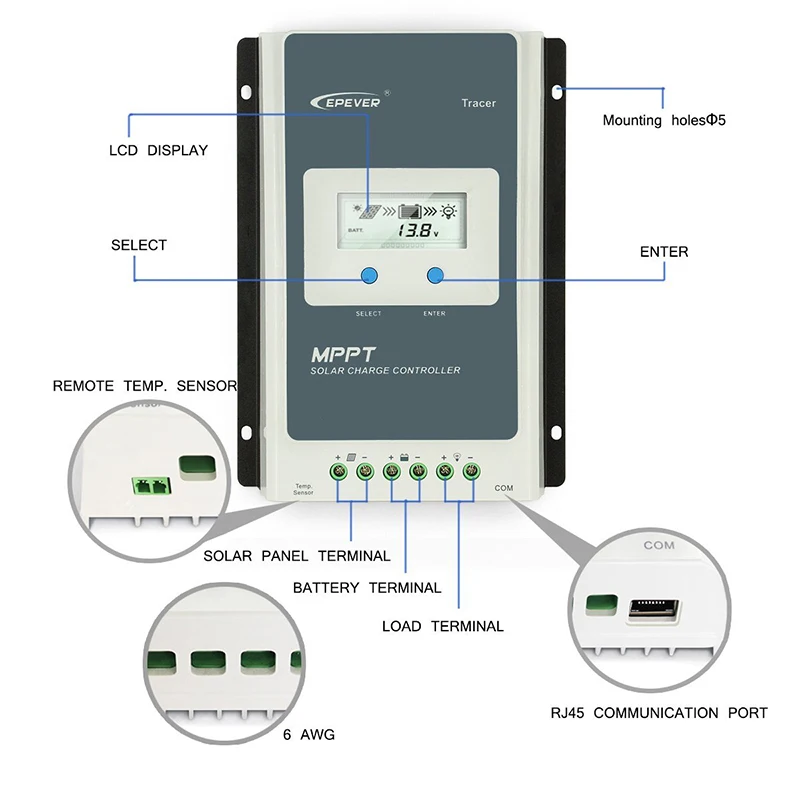Серия Tracer A. На основе общего отрицательного дизайна и усовершенствованного алгоритма управления MPPT, с ЖК-дисплеем, отображающим состояние работы, этот продукт является художественным, экономичным и практичным. Улучшенный алгоритм управления MPPT, отслеживающий ряд может минимизировать максимальную скорость потери точки питания и время потери, быстро Отслеживайте максимальную точку мощности PV Массива и получайте максимальную энергию от солнечных модулей при любых условиях; И может увеличить коэффициент использования энергии в Солнечной системе на 10%-30% по сравнению с методом зарядки PWM. Функция ограничения мощности зарядки и тока и функция редукционной зарядки автоматически улучшает стабильность, которая работает даже при подключении больших pv-модулей и высокой температуре, а также увеличивает профессиональный чип защиты для порта связи, дальнейшее повышение надежности и соответствие различным требованиям к применению.