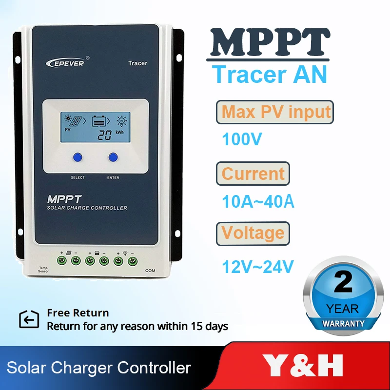 Y & H EPever MPPT 40A/30A/20A/10A контроллер солнечного заряда черный-светильник ЖК-солнечный регулятор для 12 В 24 В свинцово-кислотных литий-ионных батарей