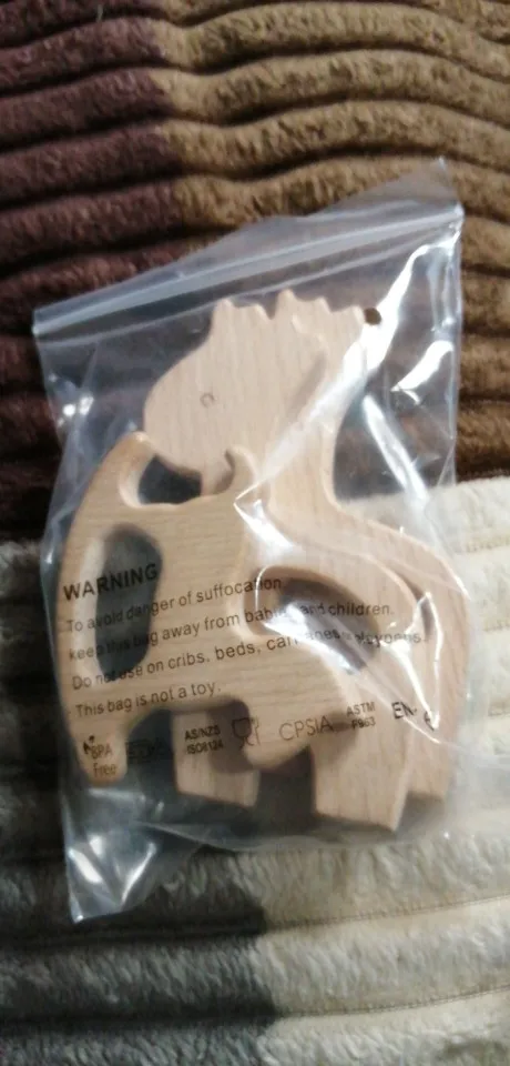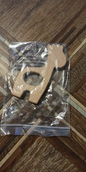 Деревянный грызунок пришёл в сборной посылке за три недели до России. Качество хорошее, дерево обработано аккуратно, заноз и изъянов нет. Размер заявлен верно. К продавцу претензий нет.