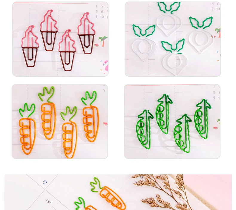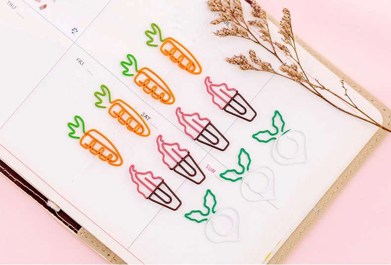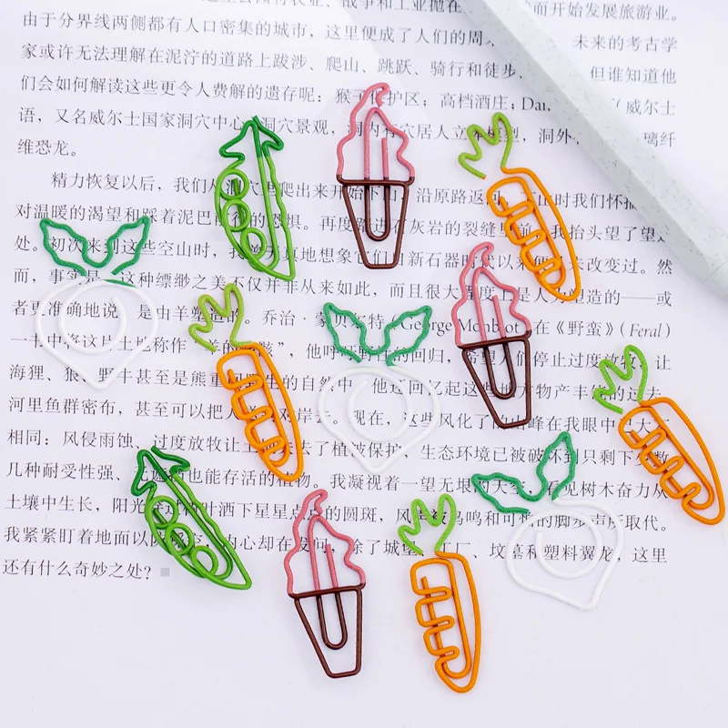 10 шт. креативные маленькие бумажные зажимы каваи в форме моркови и мороженого, скрепки для бумаг, канцелярские принадлежности