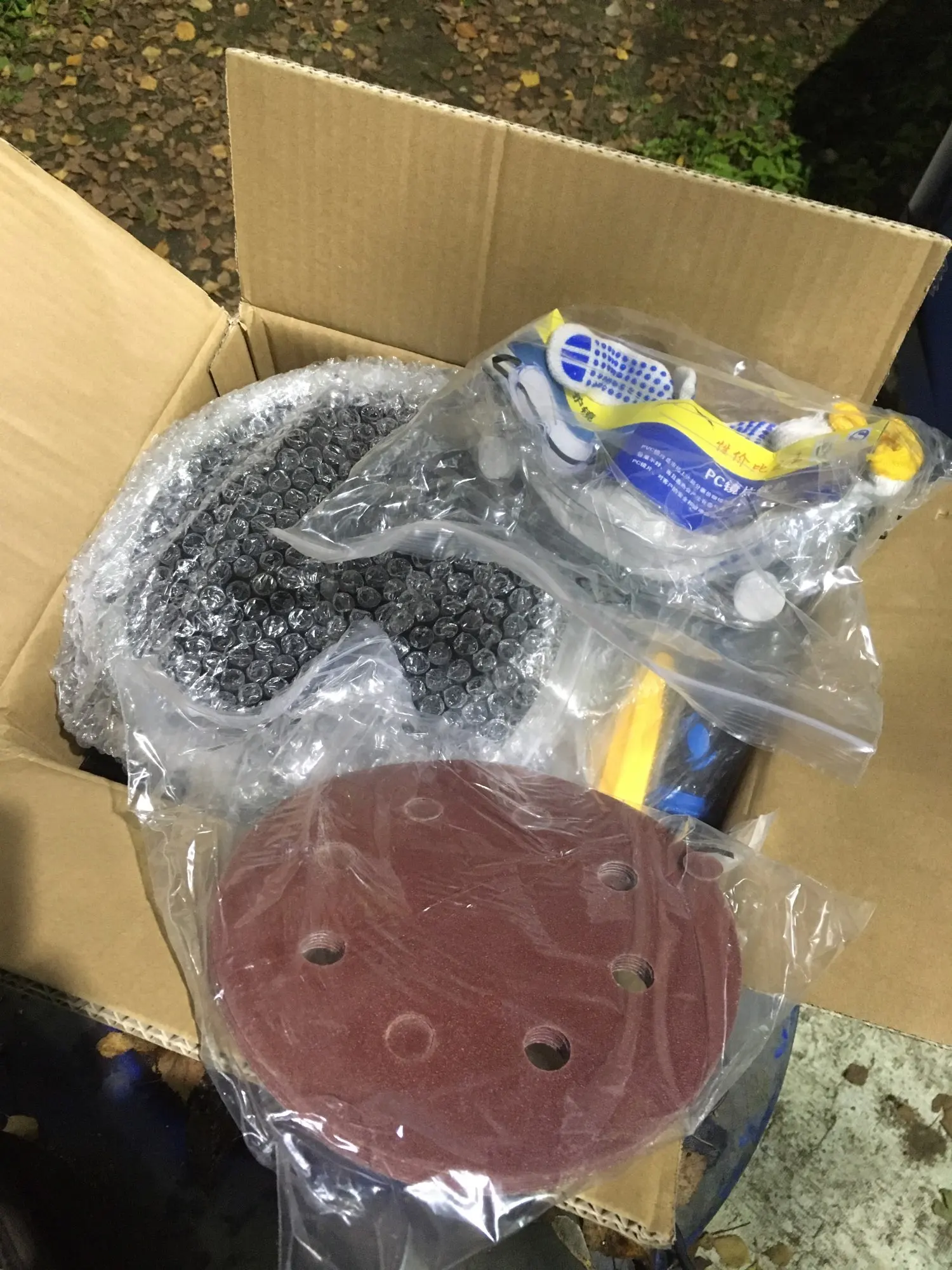 товар пришел шел конечно же не быстро где то болтался по нашей матушке России привез Курьер если подсоединять к пылесосу надо со шлангом кулибничить круги наждачный для стен нужно по грубее начиная от 60