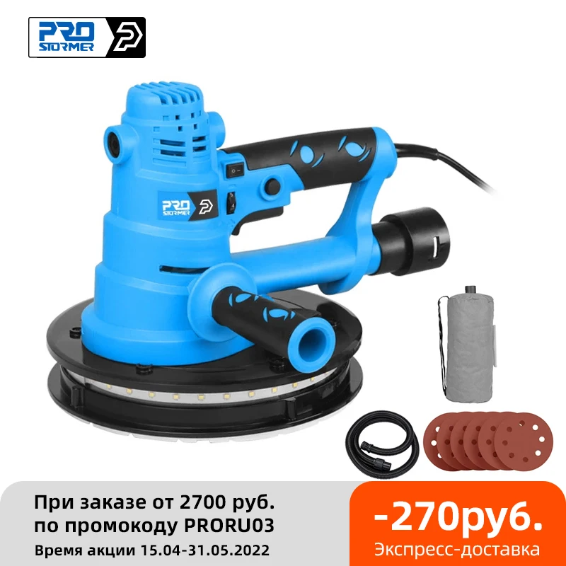 полировальная машина 750 Вт800 Вт шлифовальная машина для гипсокартона 230 В, шлифовальная машина для стен, портативный светодиодный светильник, шлифовальная машина для полировки стен от PROSTORMER