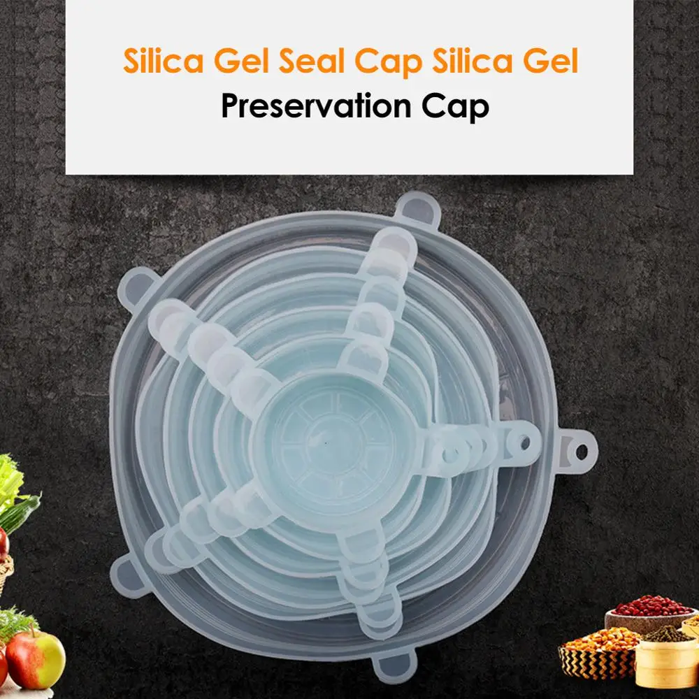 1/6 шт многоразовая силиконовая пищевая обертка стрейч вакуумное уплотнение крышка Saran обертка для кухни Организация пищевых продуктов свежие закрытые крышки