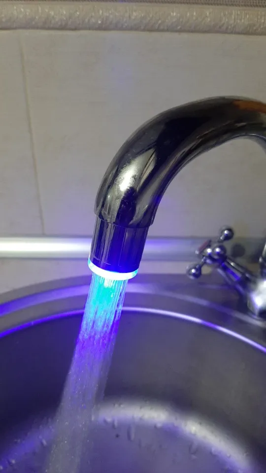 Это маленькое устройство подходит для большинства кранов и загорается набором светодиодов при включении крана.
