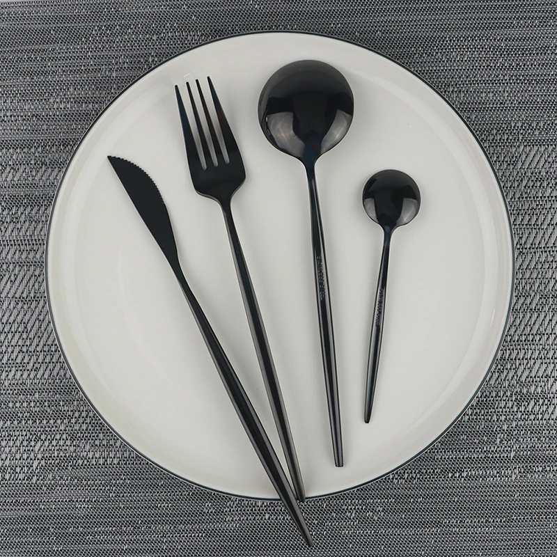 Набор черной столовой посуды из нержавеющей стали 304, нож, вилка, ...