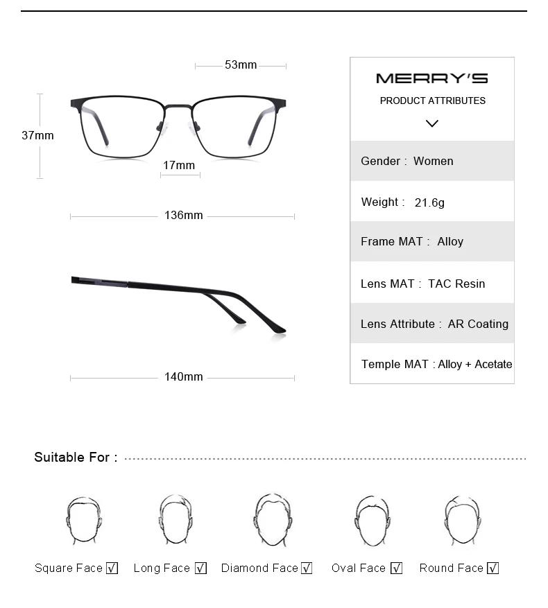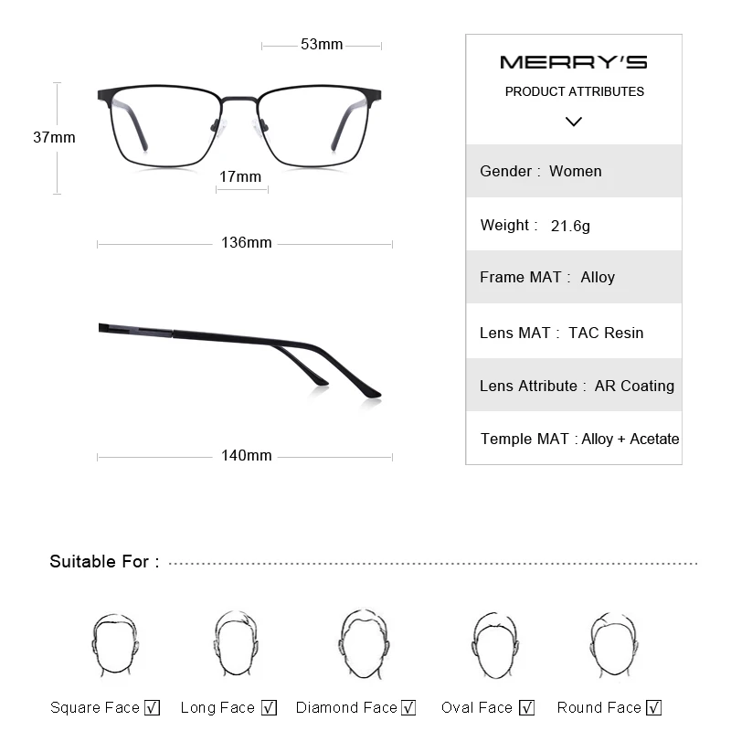 Мужские и женские очки для коррекции зрения MERRYS, дизайнерские кл...