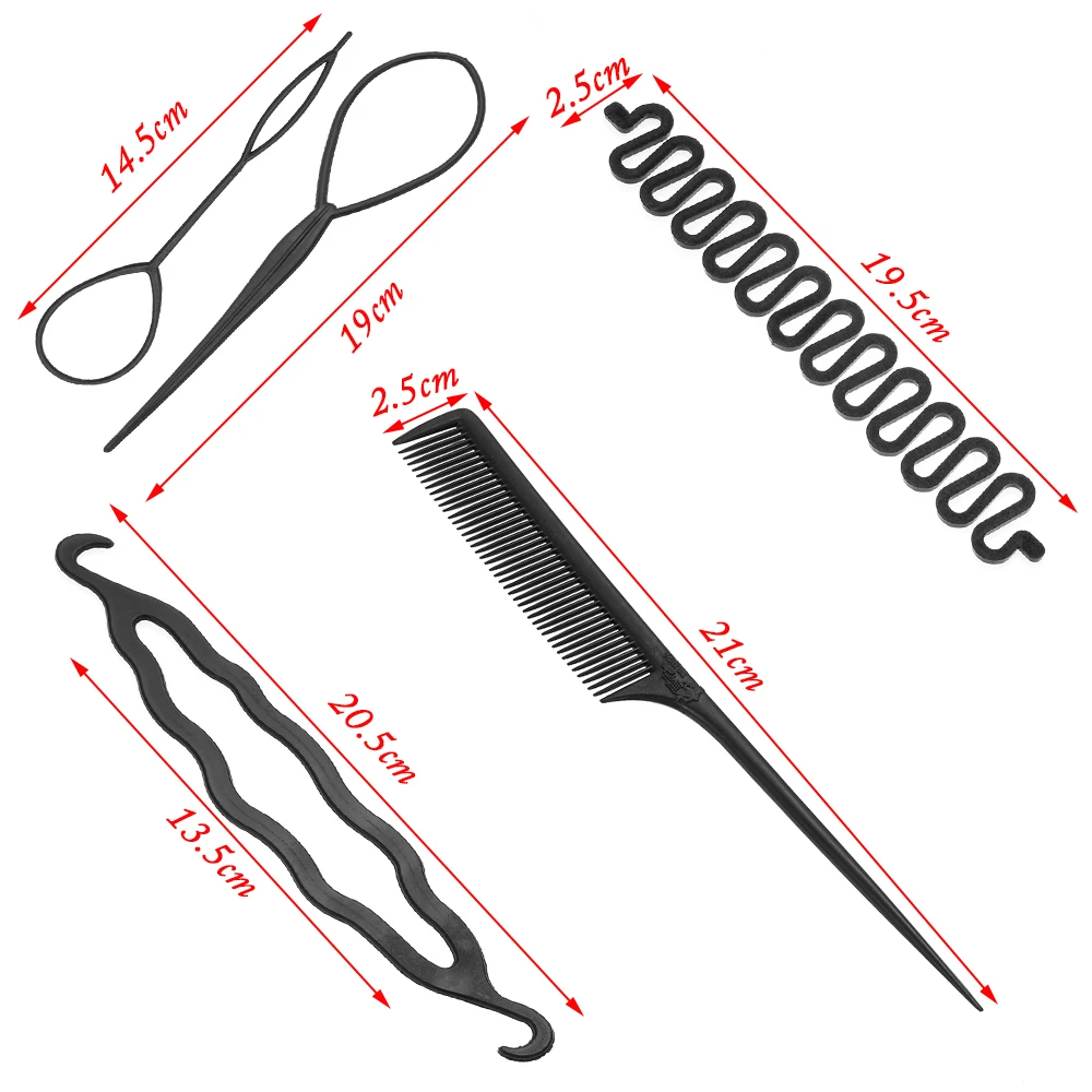 Тип изделия: инструмент для плетения волос Материал: пластик Цвет: черный размер: как показано на рисунке набор инструментов для укладки волос, сделай сам свой уникальный стиль волос включает в себя 4 различных Средства для укладки волос. Новое изображение легко воплотить в жизнь. Для профессионального, домашнего, ужина, быстро одевается. Произвольные прически. Нет химической обработки, защищает ваши волосы. Легко и удобно носить и использовать. Посылка: 2 x Выдвижная Игла для волос (один большой и один маленький) 1 x двойная пластина для крючка 1 x инструмент для плетения во французском стиле 1 x Расческа