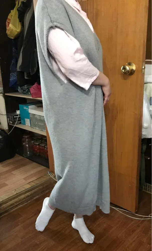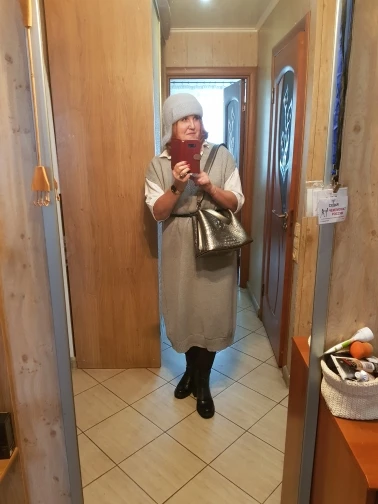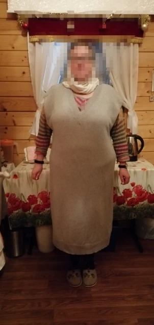 супер , полностью соответствует фото, после стирки не уменьшилось , обожаю такого плана платья, желеты. не просвечивает ,косяков нет