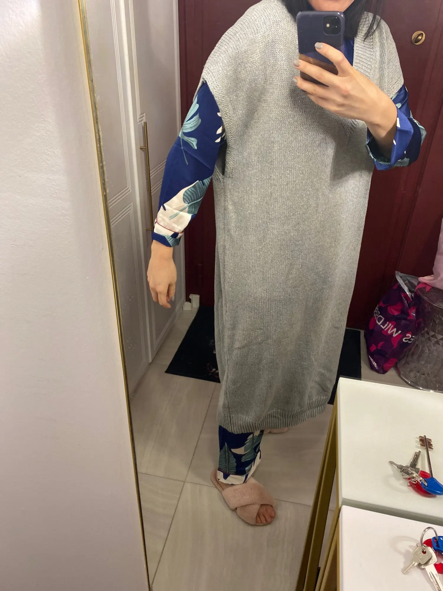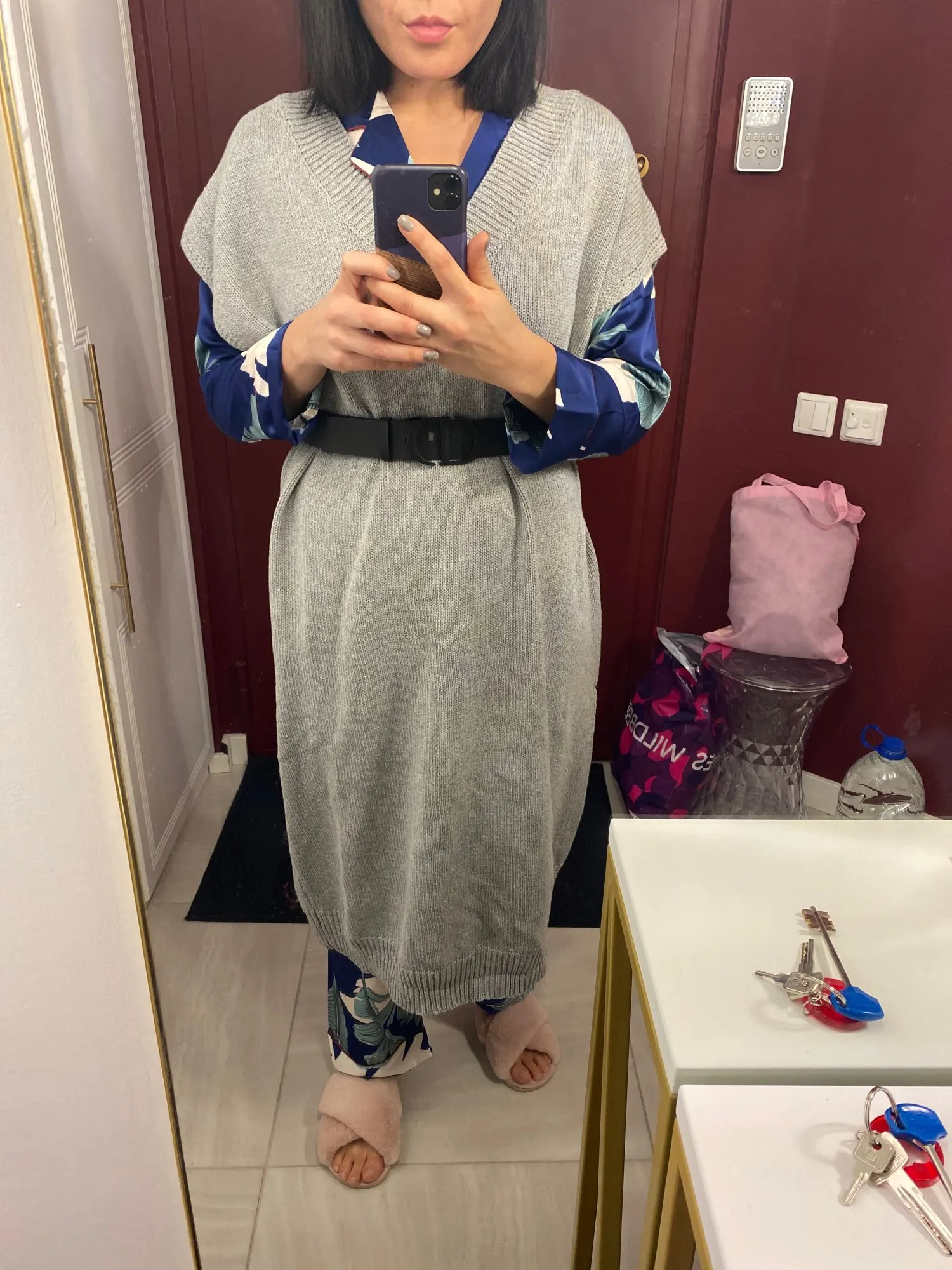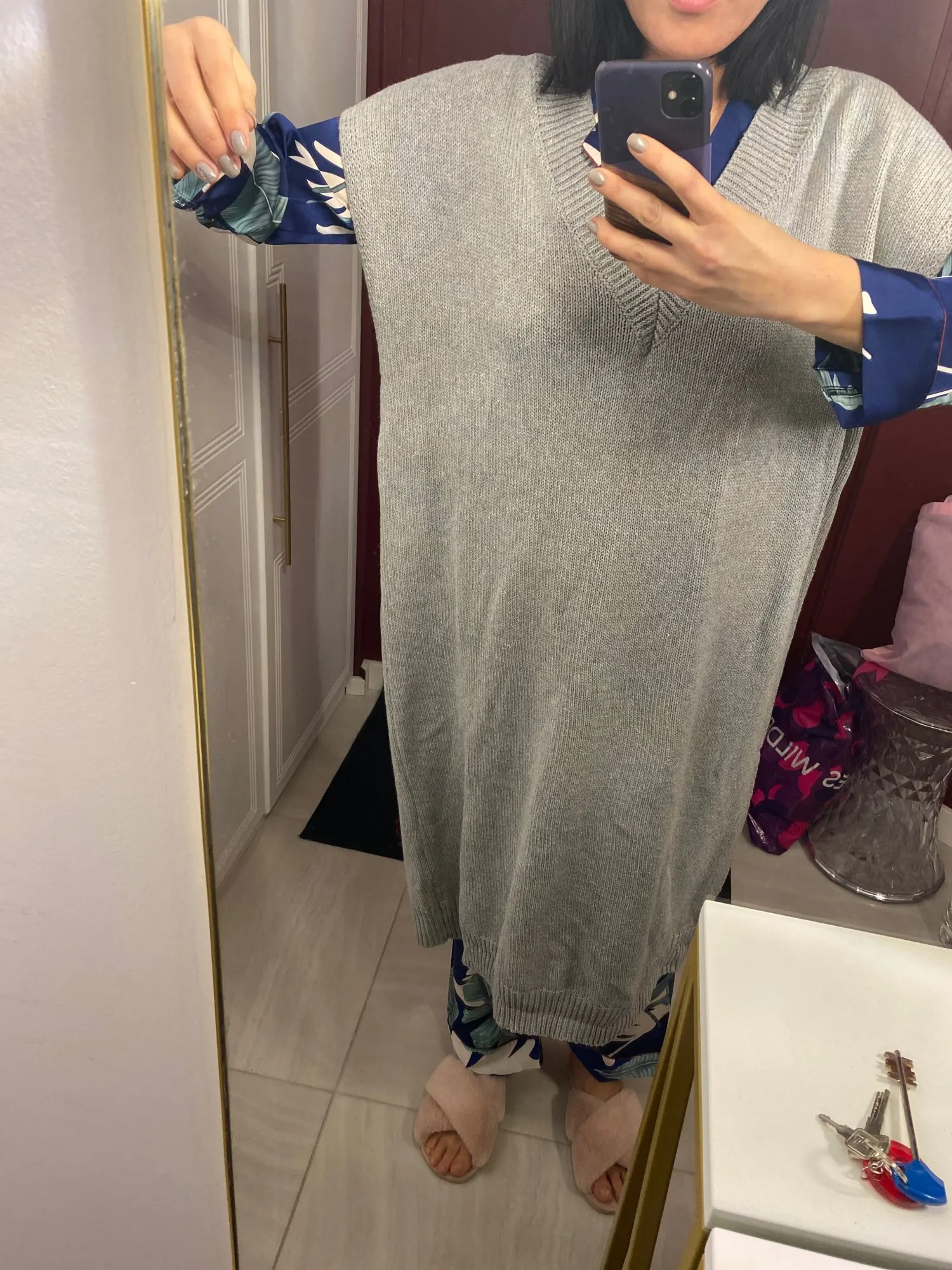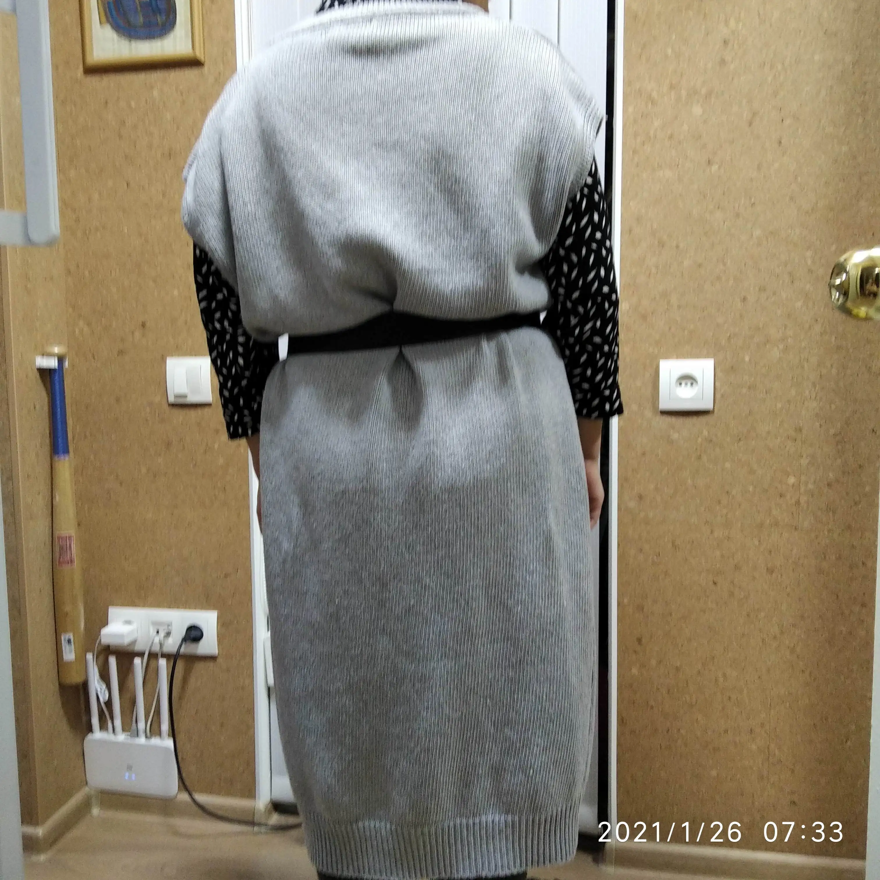 огромное,тяжелое читала в отзывах,а сама наивная надеялась получить как на картинке более тонкий трикотаж,который так элегантно смотрится на модели...НО УВЫ, Я думаю на любой фигуре будет смотреться плохо из-за ткани. очень тяжелая и грубая