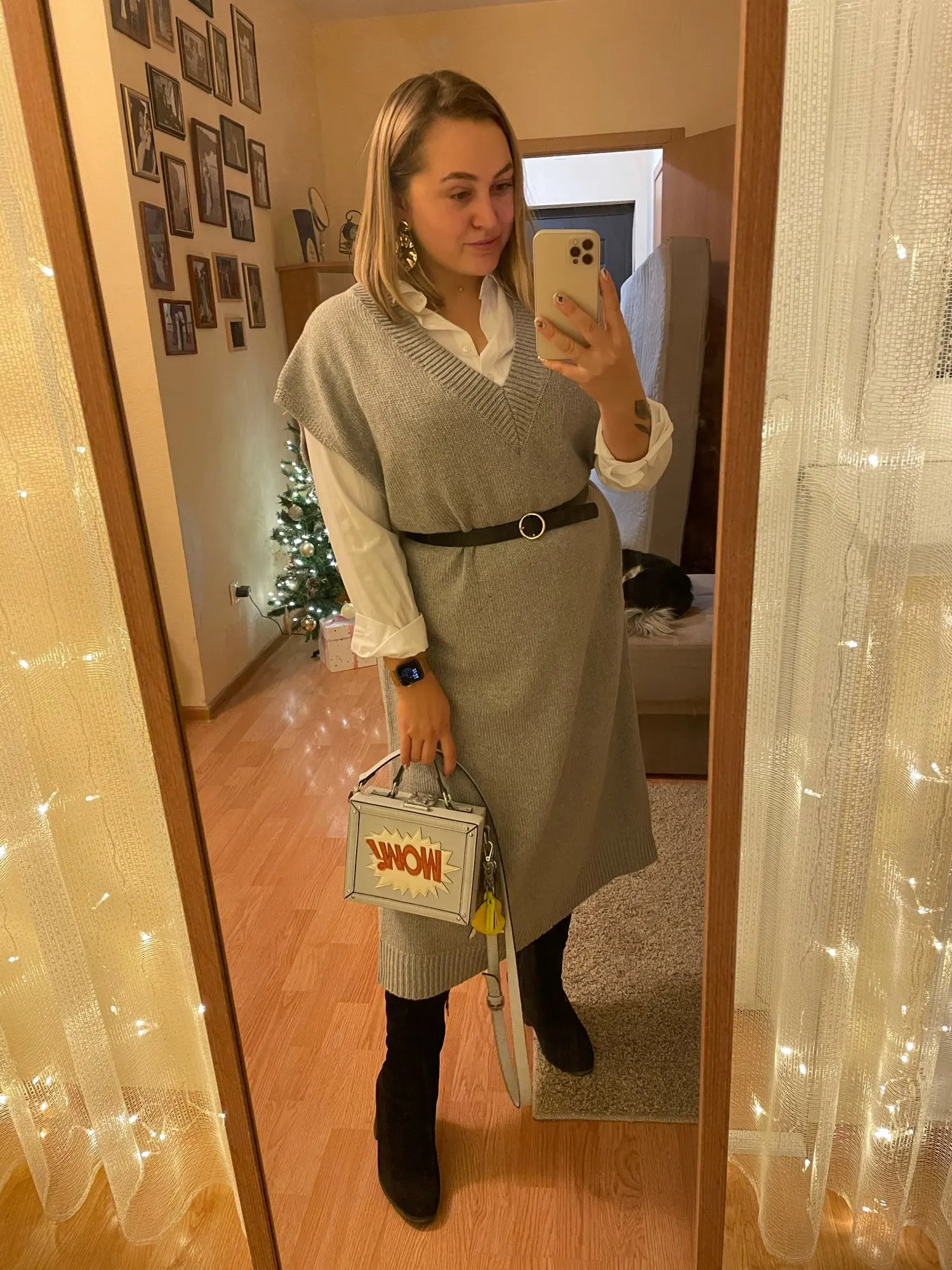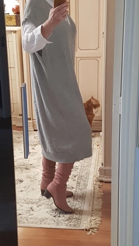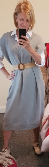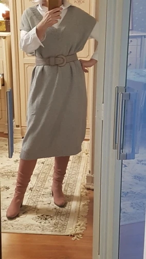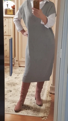 прекрасное шерстяное платье,ношу с рубашкой как на фото, выглядит стильно