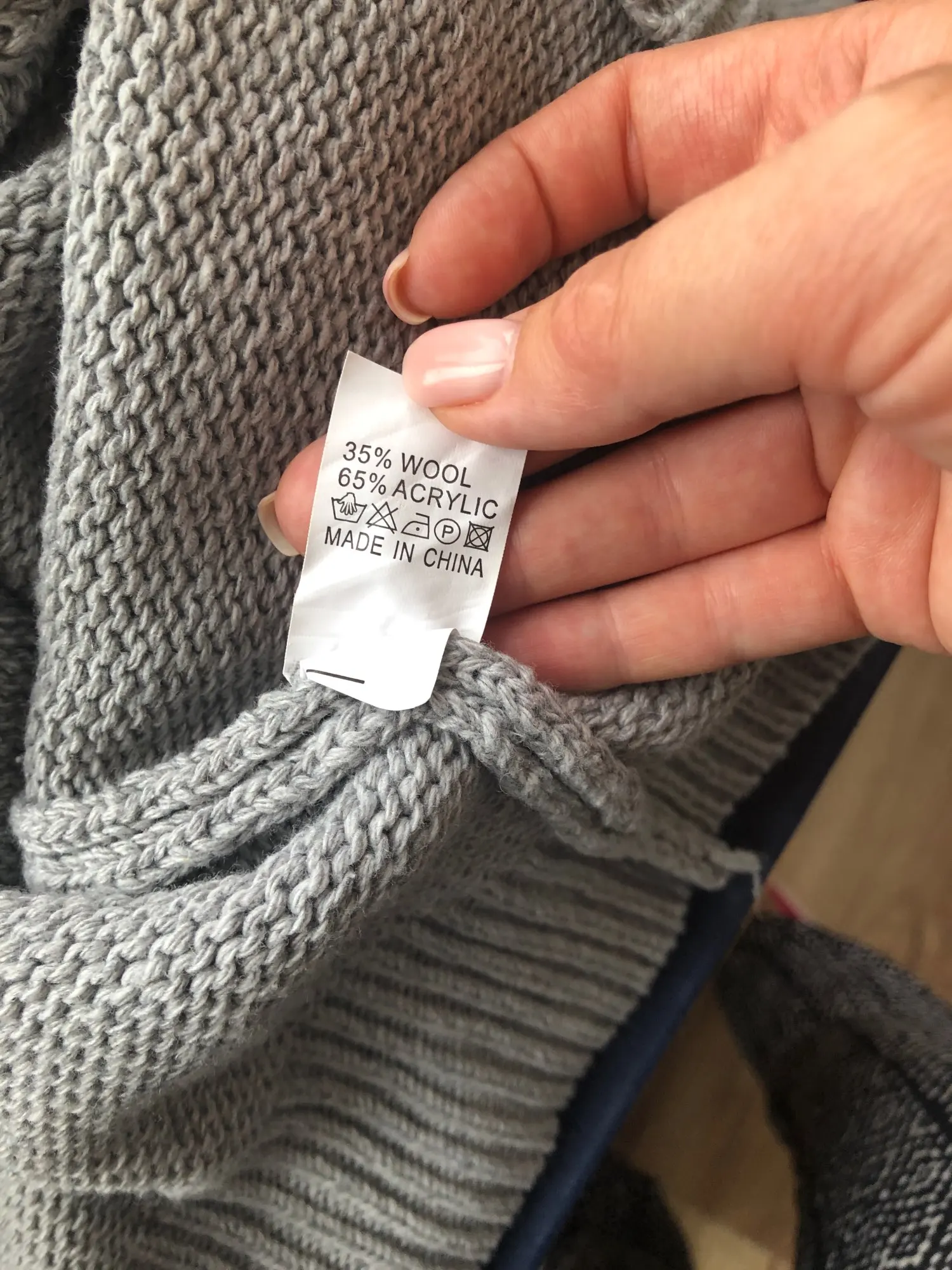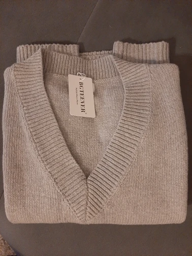 товаром не довольна. смотрится дёшево, китлевка торчит. ворот не ложиться- стоит торчком. на бирже написано: шерсть 35 и акрил 65. шерстью и не пахнет. и запах неприятный есть. нитки везде торчат. не советую.этих денег не стоит!!!!
