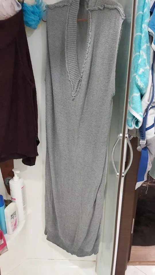 в груди 106 см, длинна 106 см, грубая, тяжелая вязка