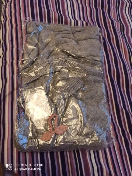 лучшая покупка этого сезона на Али, на которую не пожалели ниток - ни в длину, ни в ширину связано и сшито качественно, длинная, теплая вещь а на этикетке почему-то призыв радоваться солнцу мои параметры ОГ124, ОБ 130