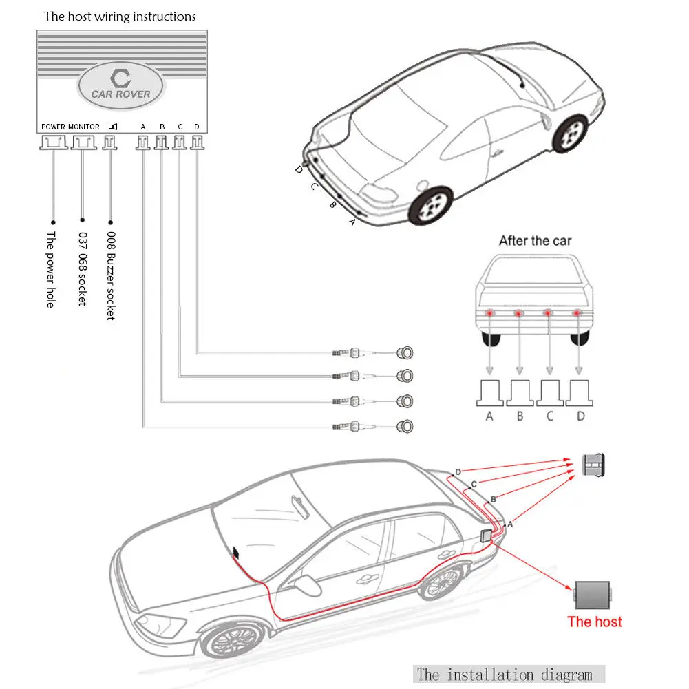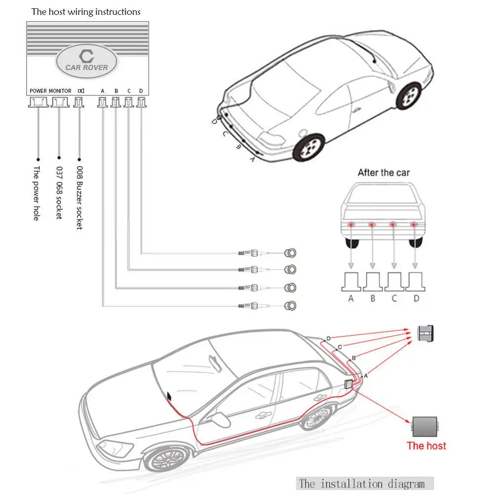 1 X основной блок управления 1 светодиодный индикатор 4 X парктроник с линией 2,5 м 1 х кольцевая пила 1 X Кабель Питания 2 X двухсторонняя наклейка