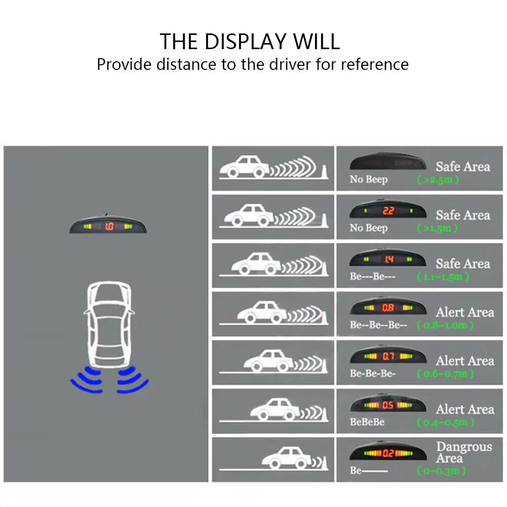 > 4 сенсорная система, двойной процессор и расширенный чип-набор для увеличения покрытия и обнаружения (0-2,5 м). > С цифровым светодиодный ным дисплеем (номер светильник). > Помогает предотвратить опасные и дорогостоящие столкновения. > Помогает обеспечить повышенную безопасность для пассажиров, пешеходов и членов семьи, которые оказались вокруг движущегося транспортного средства. > Обнаружение маленьких детей и низких стенок. > Защита от замерзания и дождя. > Простота установки. > Головка сверла для пилы в комплекте.