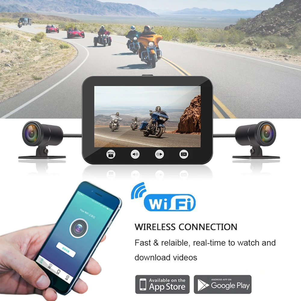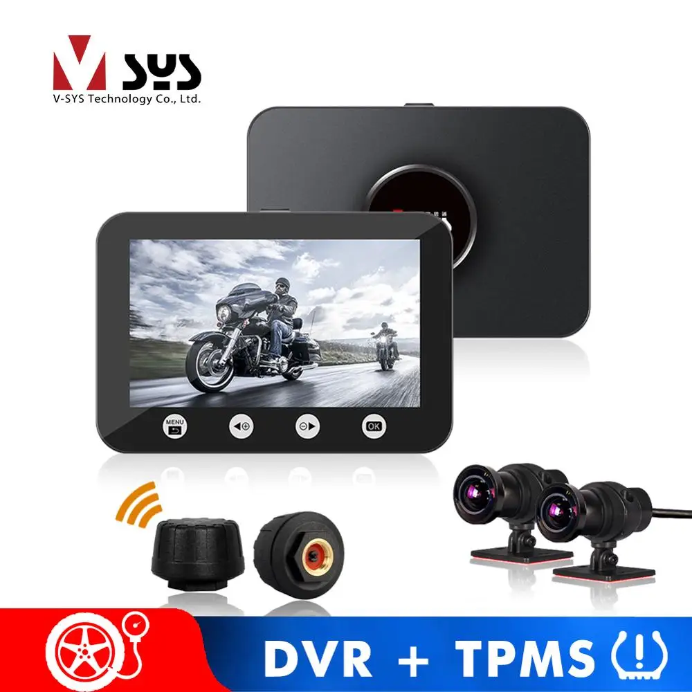 Система контроля давления в шинах VSYS + двойной 1080P мотоциклетный видеорегистратор Водонепроницаемый Wi-Fi камера рекордер вольтметр одометр