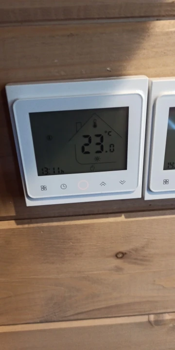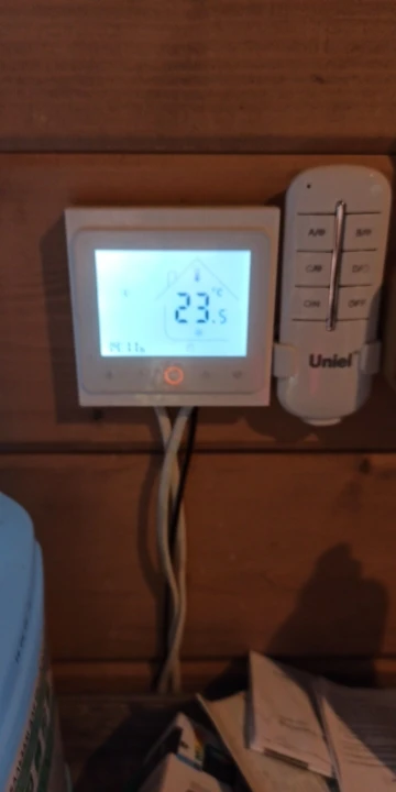 Все работает. К телефону подключился, wi-fi настроил. Расписание настраивать через телефон немного неудобно, но это разовая акция. Даже не пытался разобраться с кнопками на устройстве, все сделал через телефон и поставил блокировку от детей. Теперь у меня в ванной вечером пол теплый, когда все идут купаться. Единственный минус,.это то, что сама панель с дисплеем легко снимается, если потянуть вверх и остаётся висеть на шлейфе. Придется закрепить ее к кафелю силиконом. Заодно меньше шансов, что водой зальют.