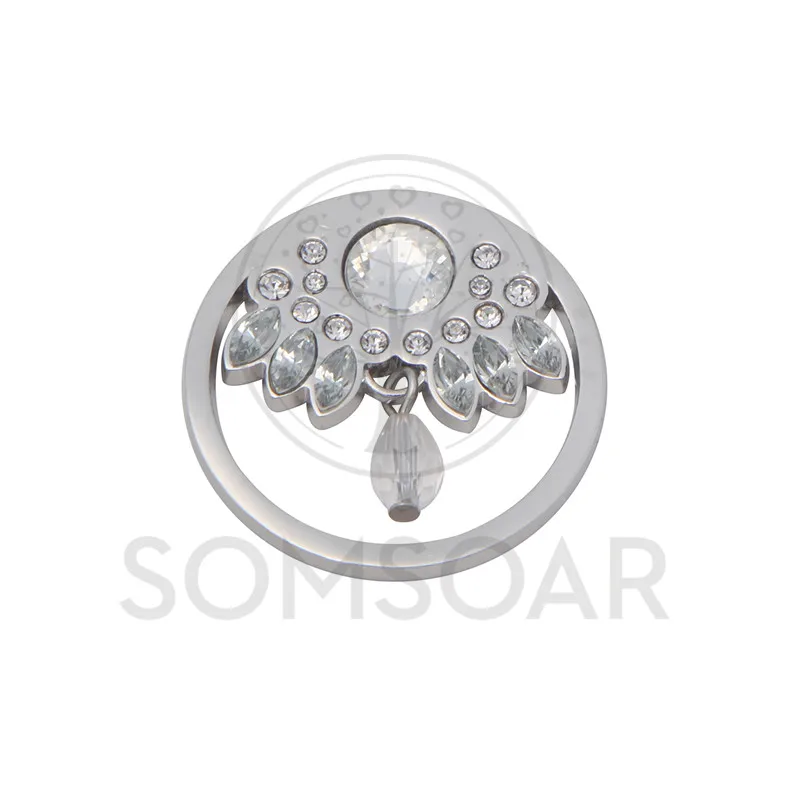 Ювелирные изделия Somsoar, недорогая распродажа, 33 мм, дерево, кристалл, Серебряный Диск, подходит для большой монеты, держатель, рамка, подвеска