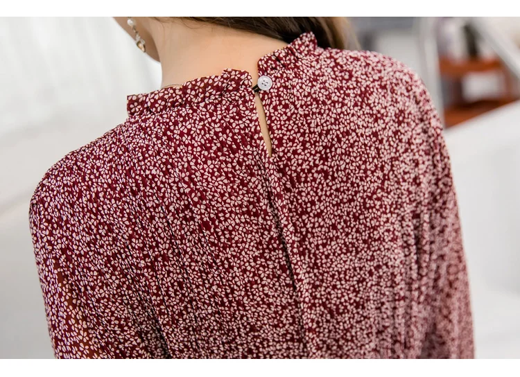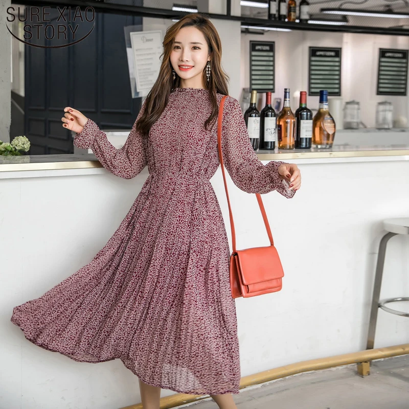 2022 элегантное шифоновое платье с воротником-стойкой и цветочным принтом, модные женские платья с длинным рукавом, весеннее длинное плиссированное платье-трапеция 3603 50