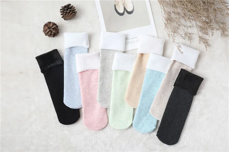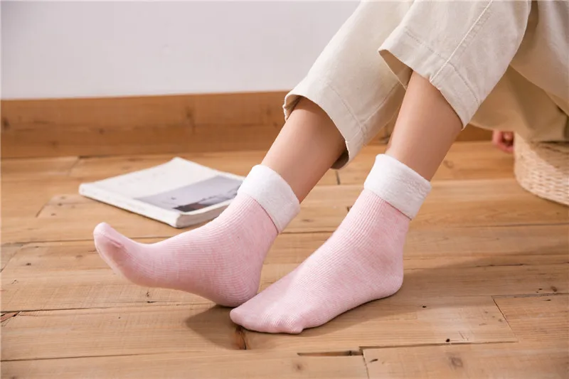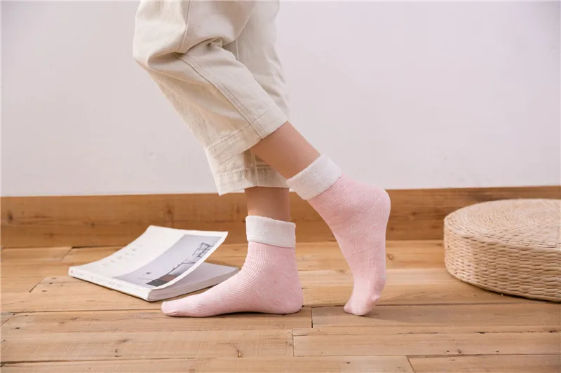 Носки женские Полосатые Шерстяные однотонные, теплые утепленные термоноски из хлопка, женские бархатные сапоги для сна, 5 пар
