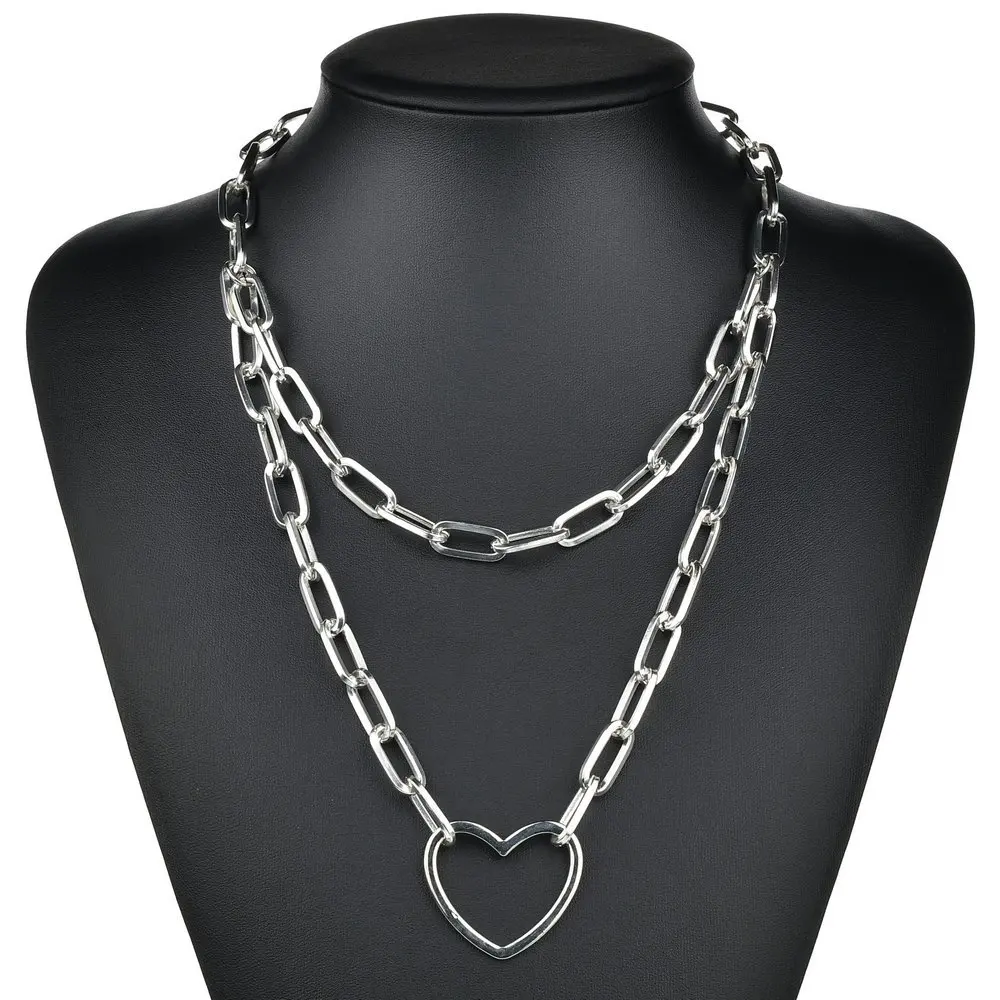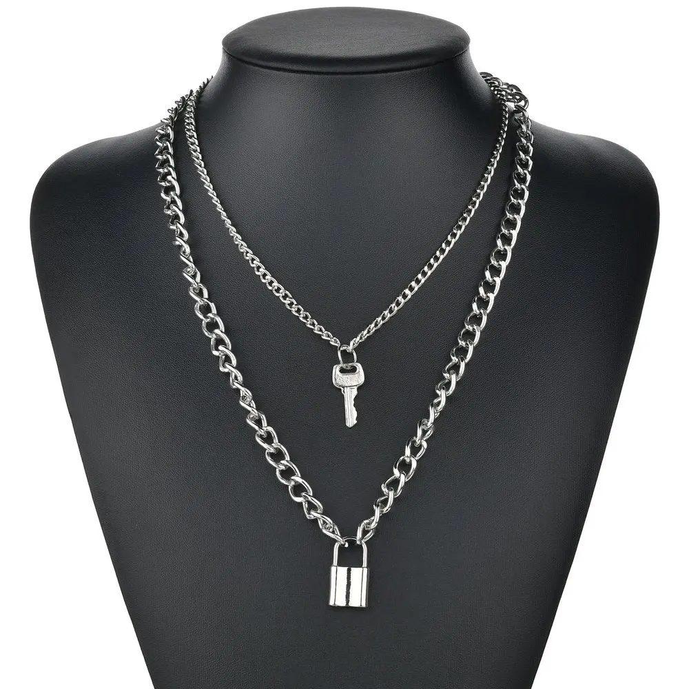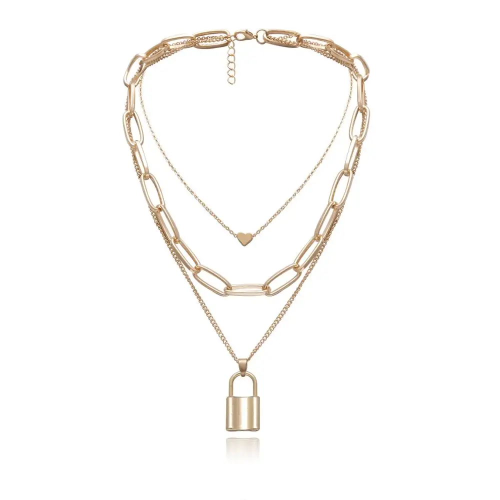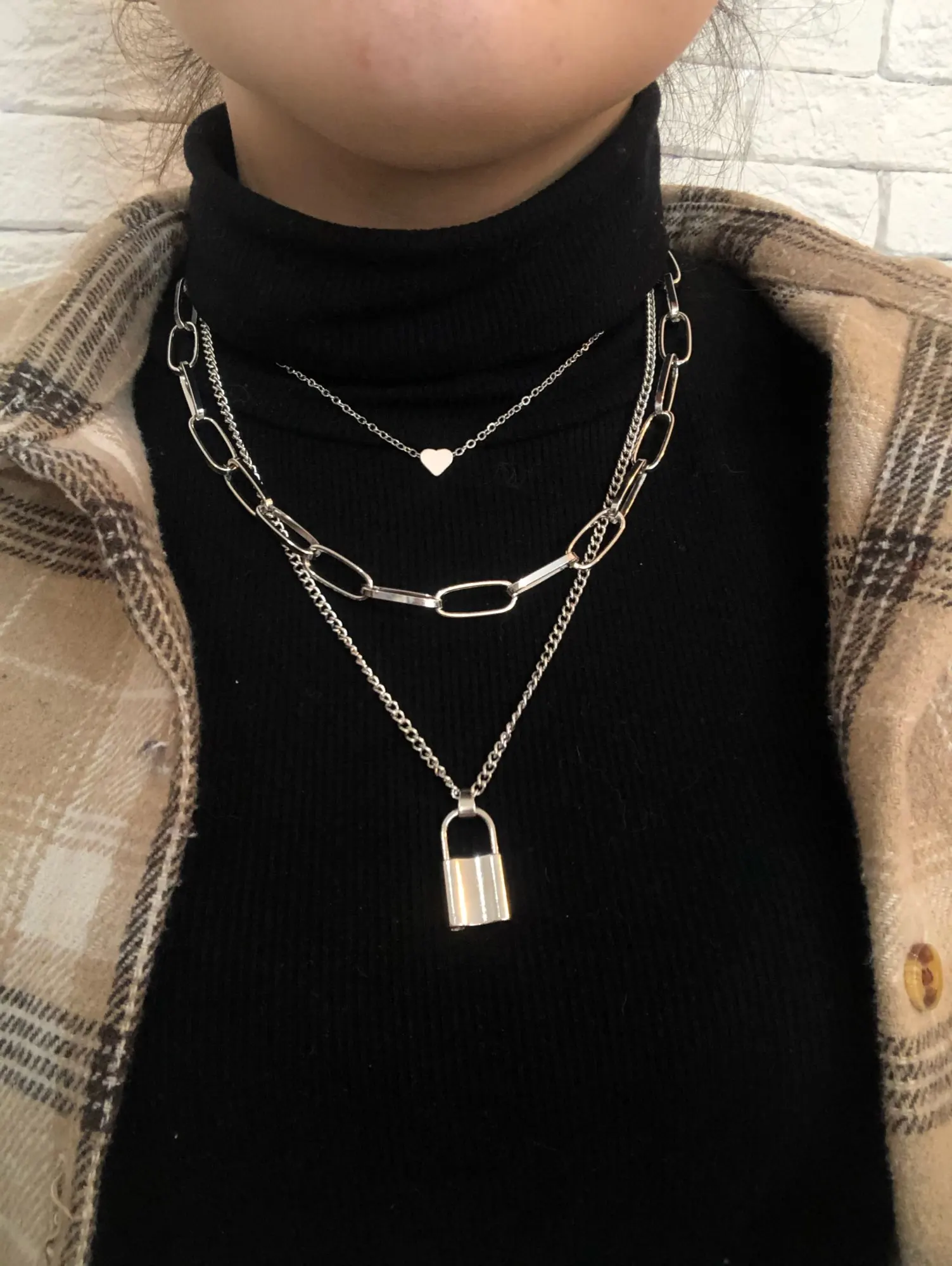 Многослойное ожерелье-цепочка в стиле хип-хоп с замком в виде сердца, женскоеМужское ожерелье с подвеской в виде замка в стиле панк-рок, эмо, гранж, готические украшения