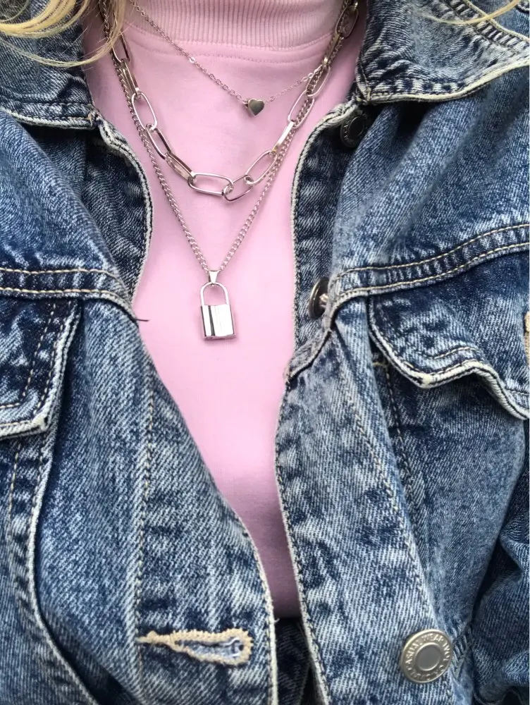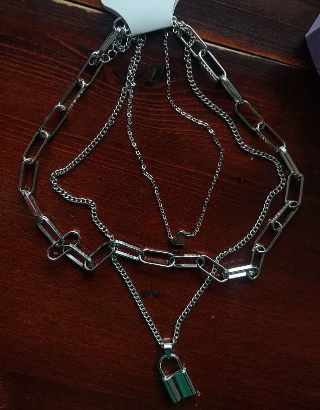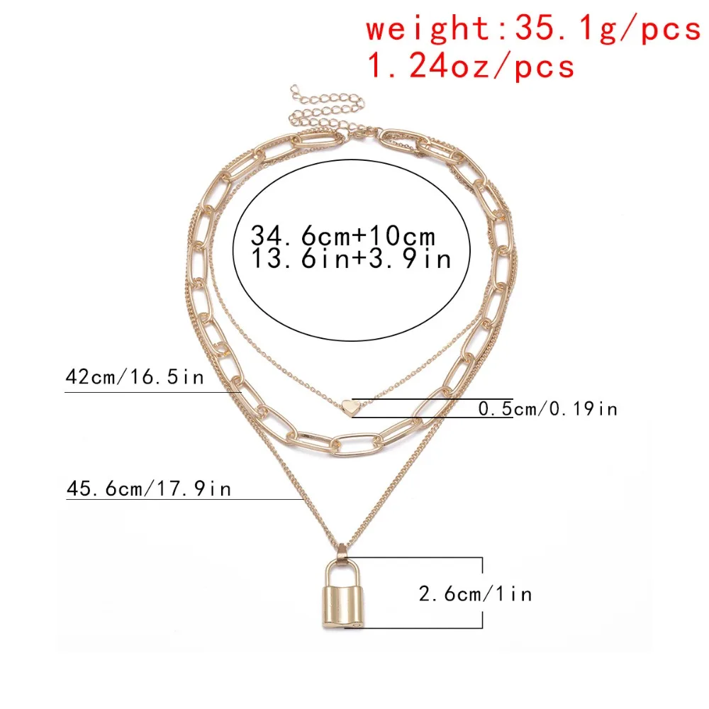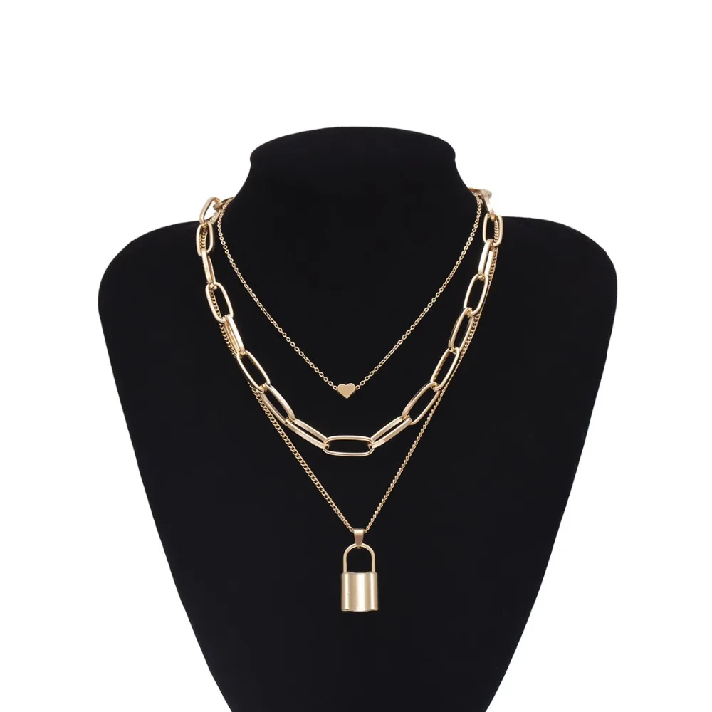 Многослойное ожерелье-цепочка в стиле хип-хоп с замком в виде сердца, женскоеМужское ожерелье с подвеской в виде замка в стиле панк-рок, эмо, гранж, готические украшения