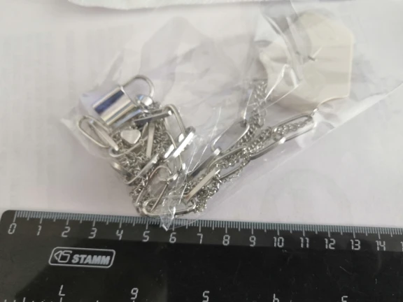 Цепь достаточно хорошая, но очень лёгкая, звенья сделаны как будто из алюминия, регулируется длина с помощью застежки, впринципе меня все устроило, но хотелось бы заранее знать из какого металла она сделана, так как я ожидала цепь немного тяжелее и внушительнее)