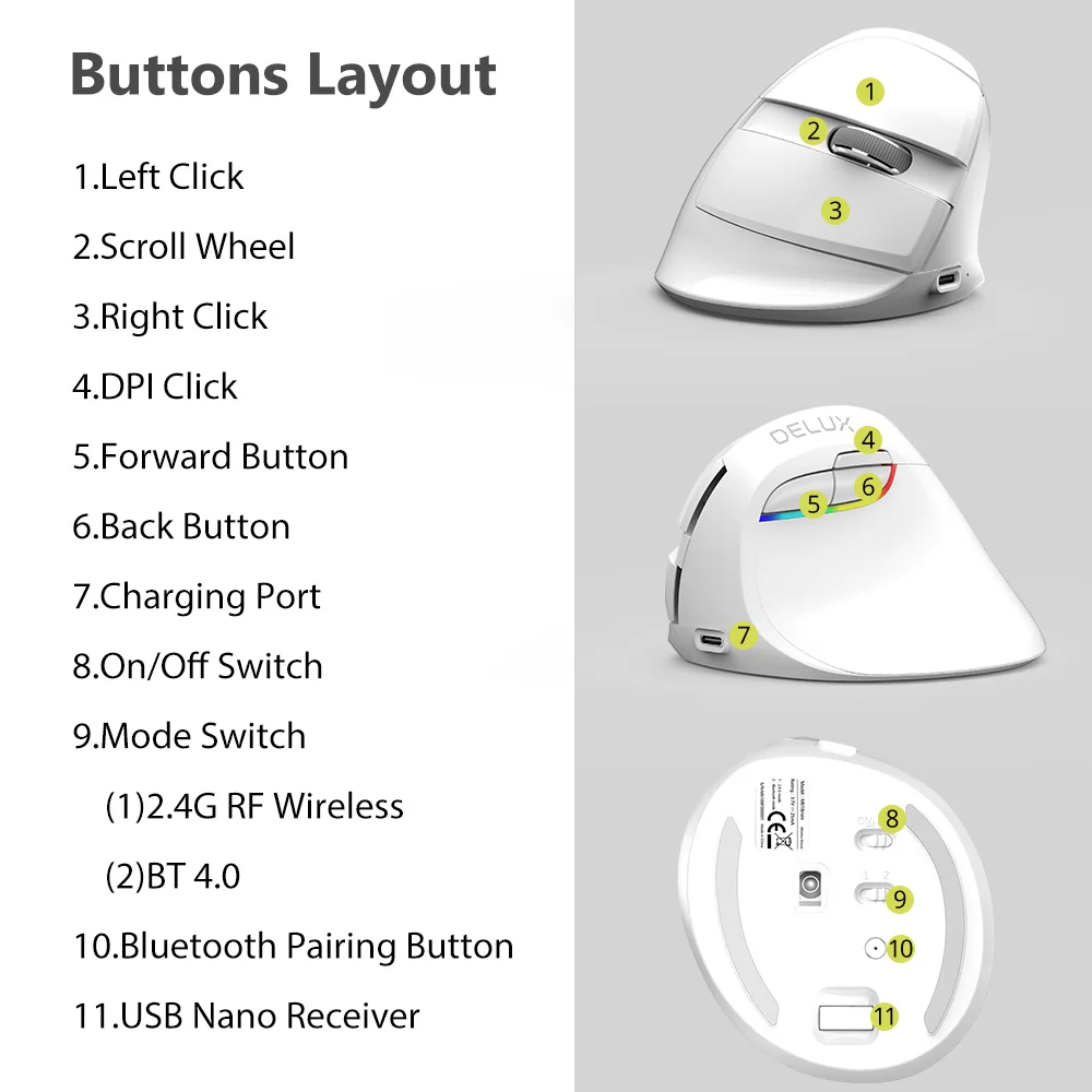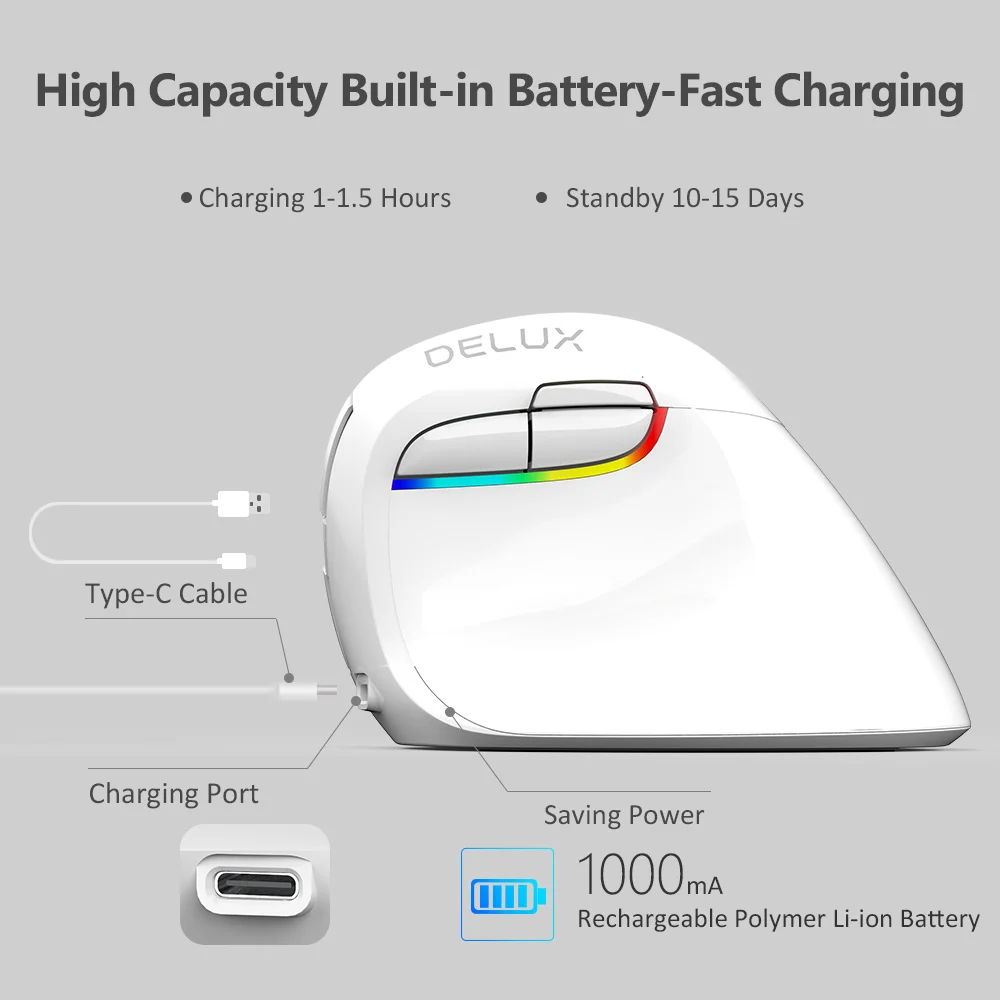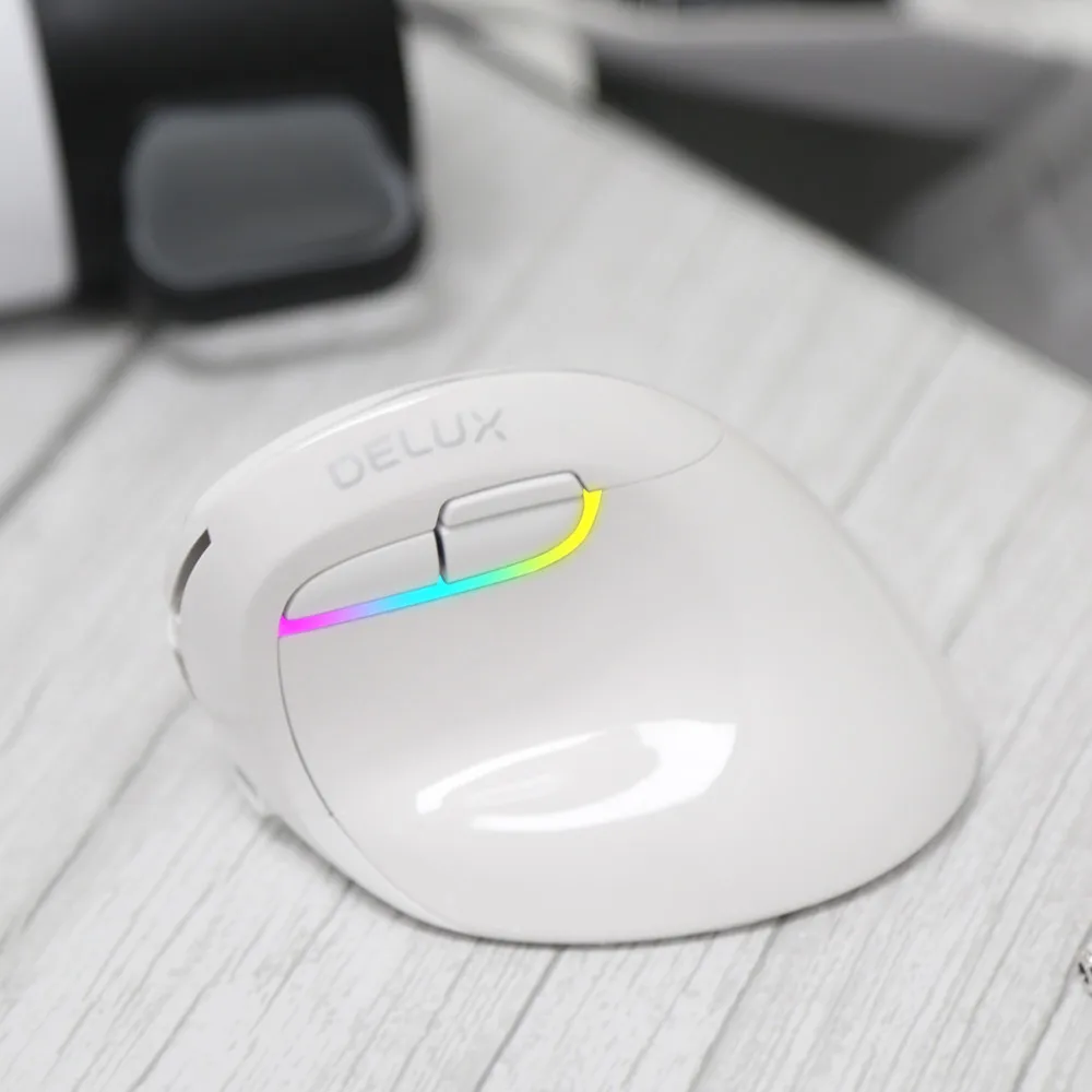 Мышь Вертикальная Delux M618 Mini, беспроводная эргономичная, с Bluetooth, 2,4 ГГц, RGB-подсветка, перезаряжаемая, бесшумный клик, для офиса