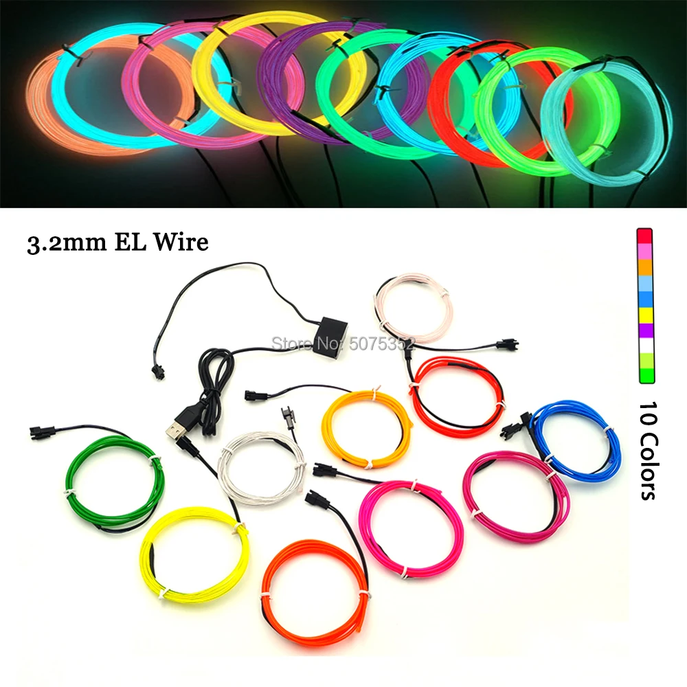 3,2 мм EL трубка гибкий неоновый светодиодный светильник светящаяся лента светодиодный костюм DIY материал водонепроницаемый EL проволочный канат для сада декор для новечерние