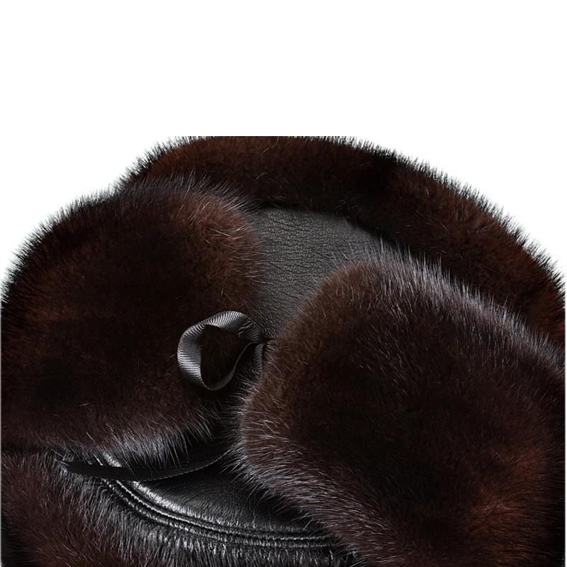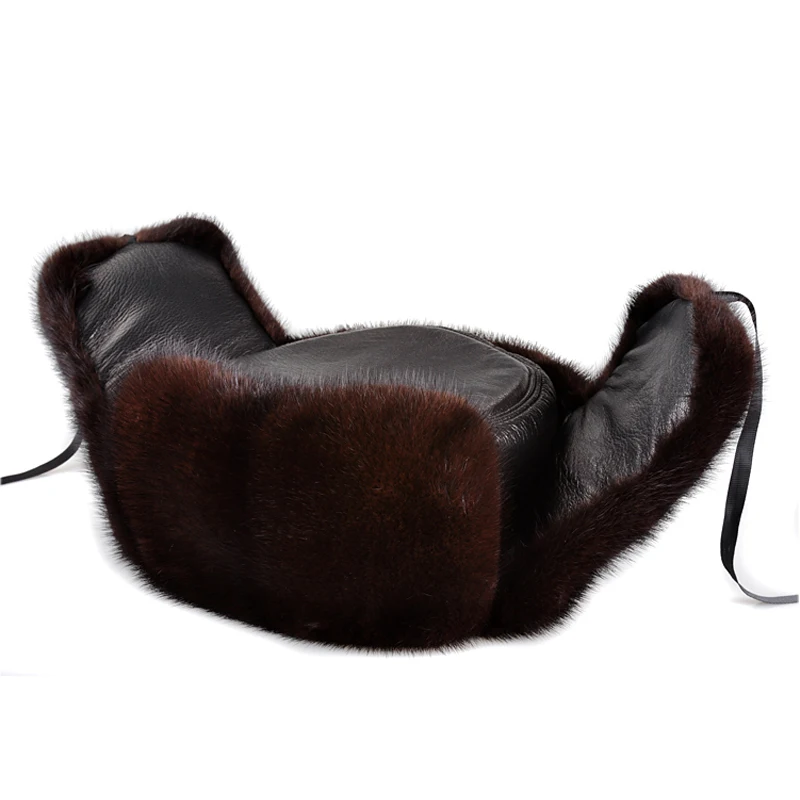 Мужская теплая шапка-бомбер из натурального меха норки, Чернаякоричневая теплая шапка для пожилых ушей, мотоциклетная Русская Шапка, подарок на зиму