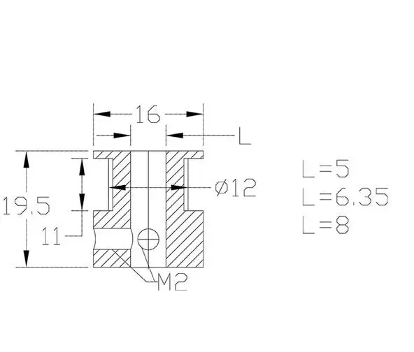 8. 20 ширина зуба 6 мм отверстие 5 мм без зубов