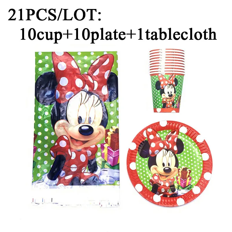 Вечерние принадлежности для первого дня рождения для маленьких девочек, красная тема Минни Мауса, Одноразовая чашка + тарелка + скатерть, набор посуды