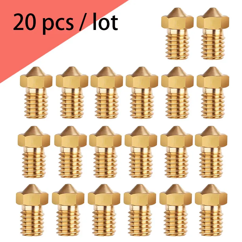 Насадка с резьбой для 3D-принтера V5 V6 M6, 20 шт., сопла 0,2, 0,25, 0,3 мм, 0,35, 0,4 мм, 0,5, 0,6, 0,8, 1,0, медная нить 1,75 мм