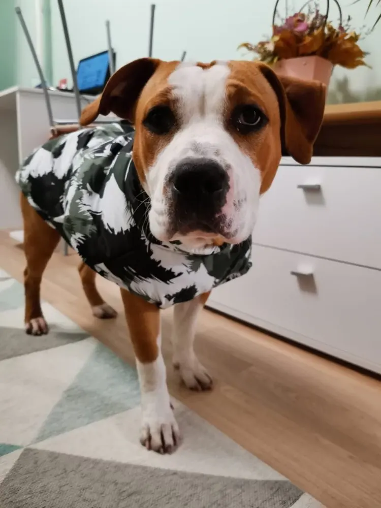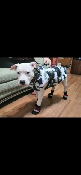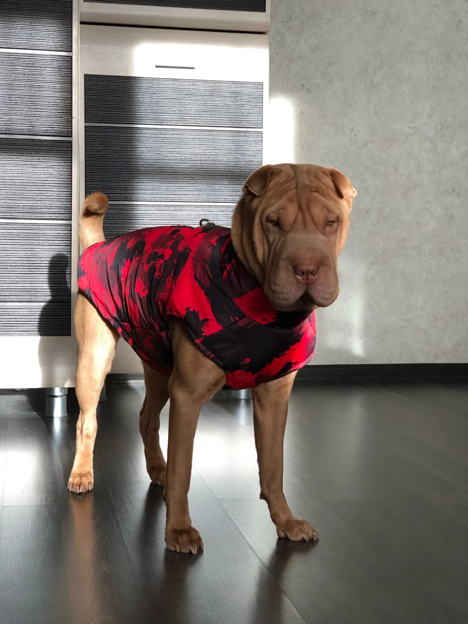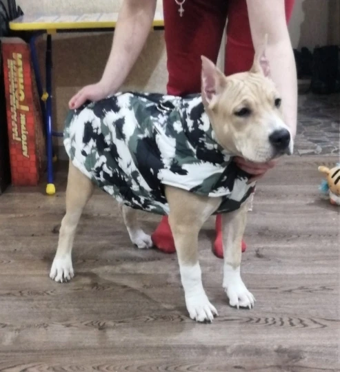 Лучшее качество ожидаемого, размер идет идеально, и ткань выглядит хорошо. Посмотрите, как долго оно длится. Я купил 4XL для своего американского Стэнфорда, около 22 кг.
