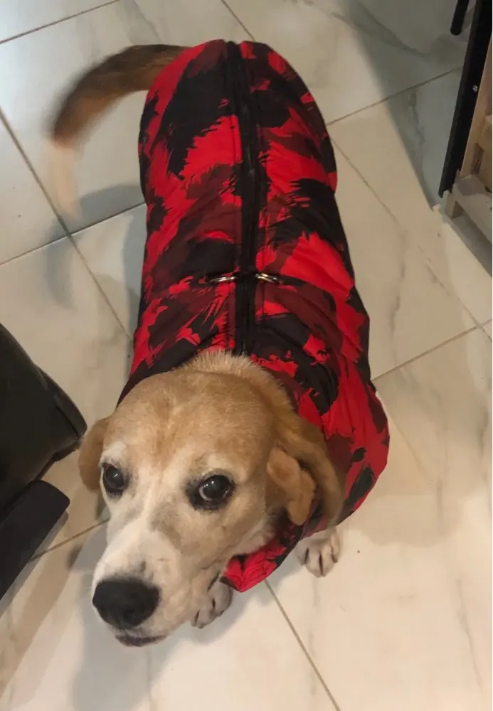 Супер куртка для собаки. Заказанный размер для beagla 20кг 4XL. Идеально подходит.