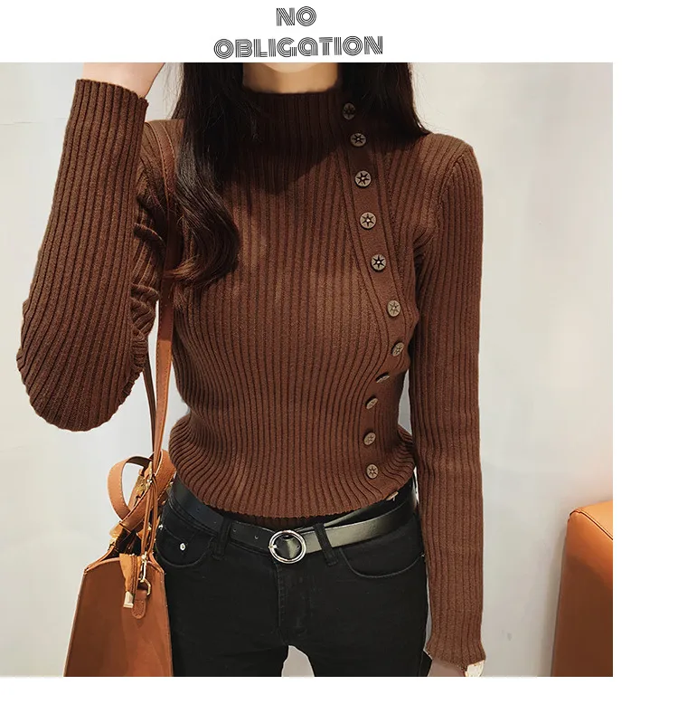 Женский свитер с высоким воротом pull femme, Однотонный свитер с длинным рукавом, вязаный пуловер в Корейском стиле, зима 2019