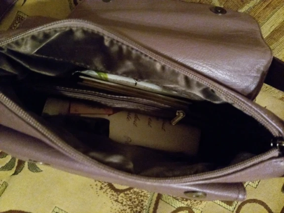 Спасибо большое за сумочку и быструю доставку. Пришла за 3 недели, как раз в подарок к новому году. Сумка не из натуральной кожи, кожзам. Кожанные только петельки на боковых замках. За несоответствие описания снимаю 1 звезду. Все строчки ровные, только верхний, основной замок немного до конца не закрывается. Не поняла для чего боковые кармашки? Думала, что это отделение для зонта, но они маленькие и не глубокие, скорее всего для красоты. Продавец положил в подарок резинку для волос, спасибо. Вообще сумка за такую цену хорошая. Летом посмотрим, как себя поведет. Продавца рекомендую.