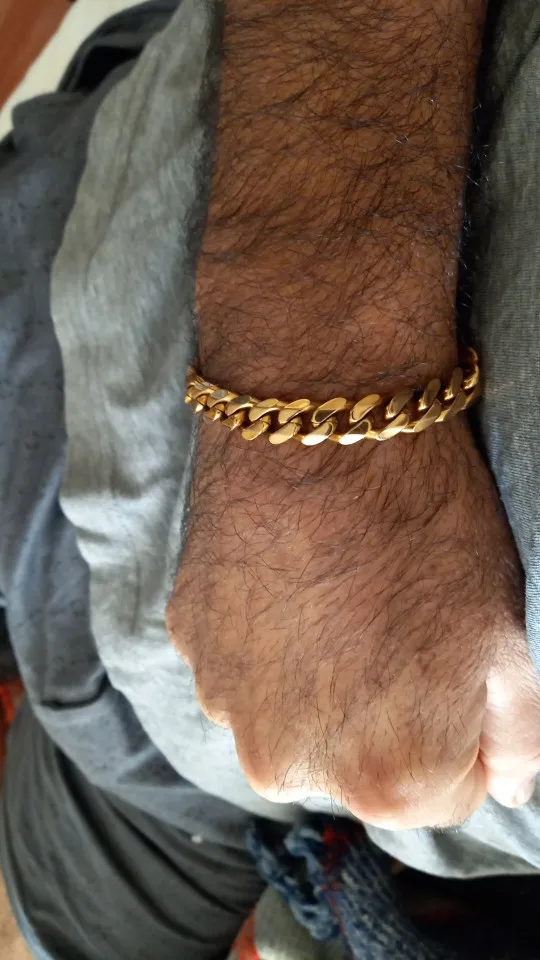 Чрезвычайно быстрая доставка, идеальная длина, (запястье 17 см), немного легче, чем ожидалось, золотой цвет немного розовато