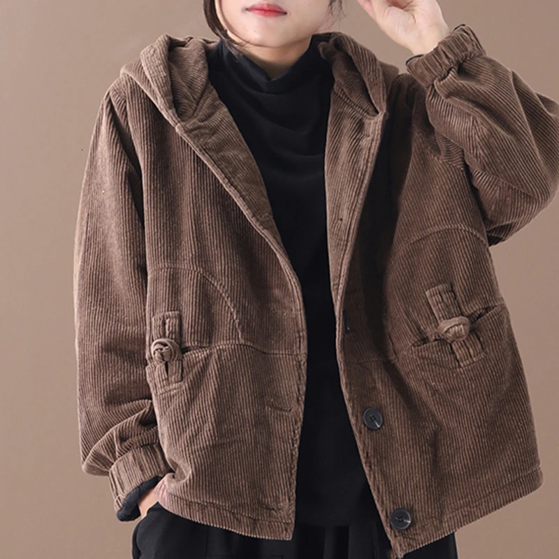 Куртка женская зимняя Max LuLu, теплая, с капюшоном, винтажная, Вельветовая, в готическом стиле, 2019