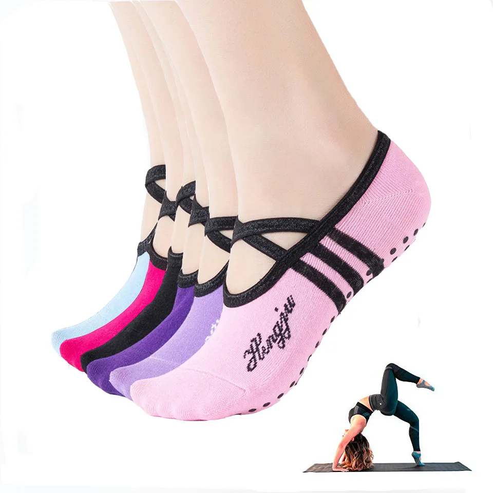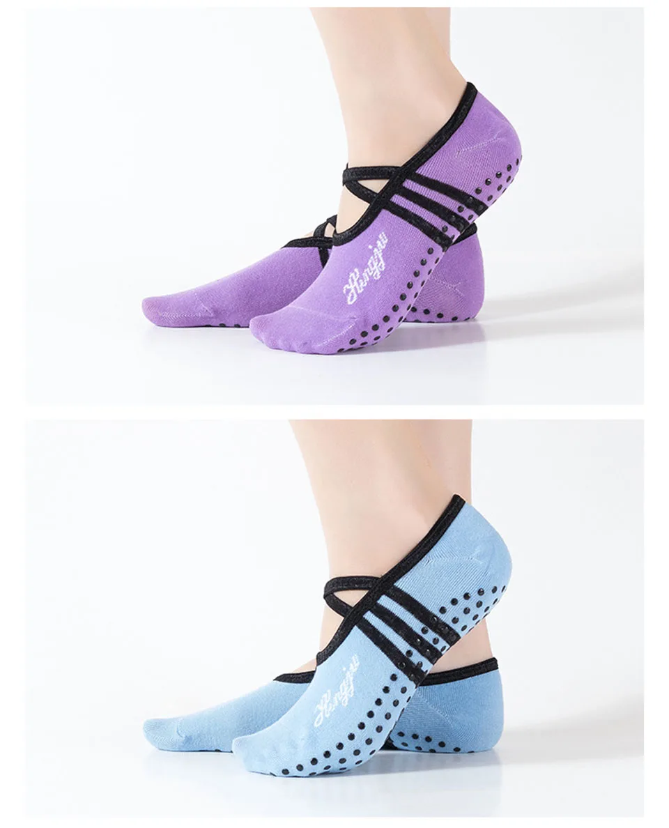 Дышащие женские носки для йоги, силиконовые Нескользящие носки для пилатеса, занятий спортом, балетом, фитнесом, босиком, танцевальные Тапочки с захватами