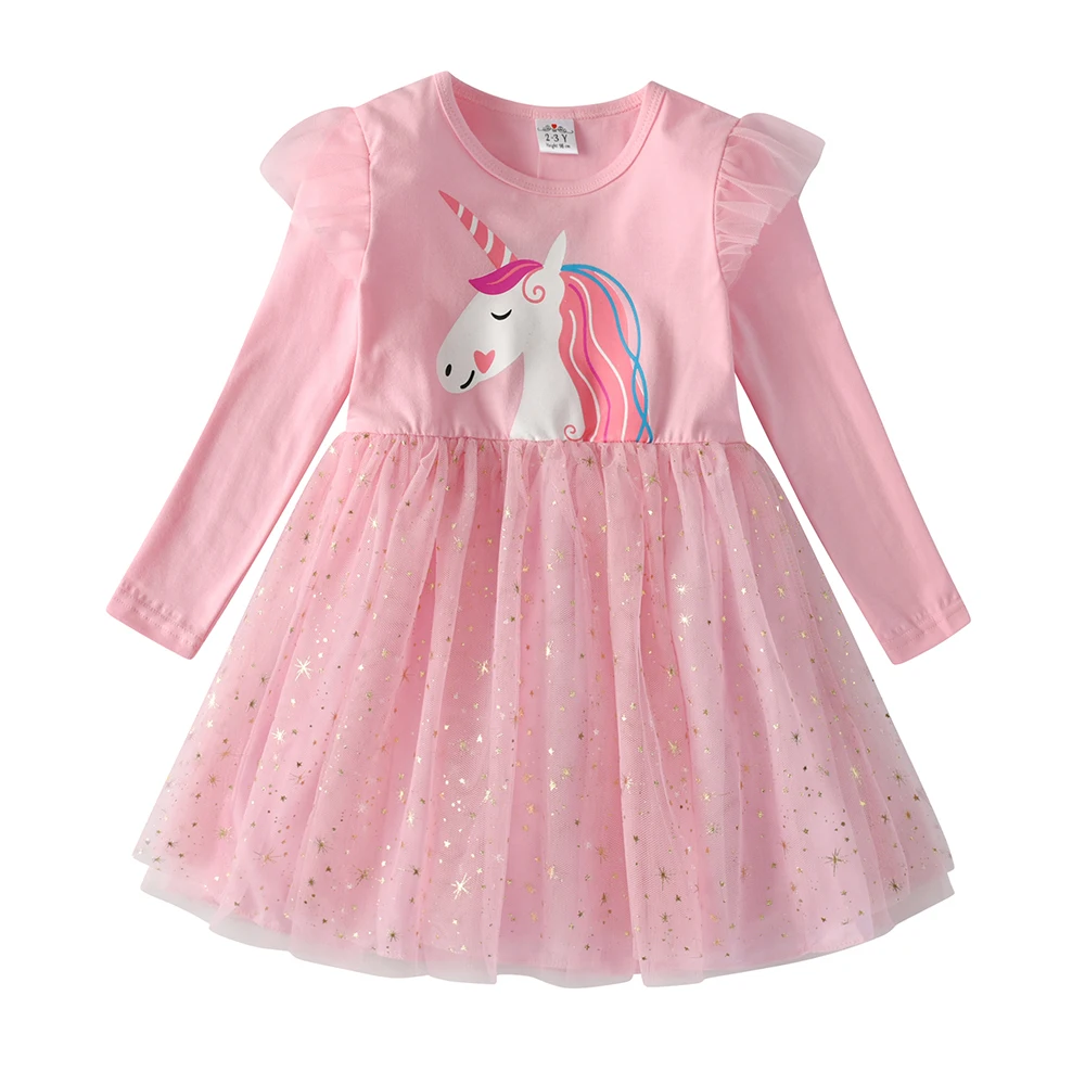 Платье с единорогом VIKITA для маленьких девочек; Платья принцессы для дня рождения; Сезон осень-зима; Vestidos; Детские одноцветные платья для девочек