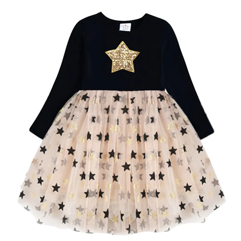 Детское Хлопковое платье для девочек, с длинным рукавом, с блестками