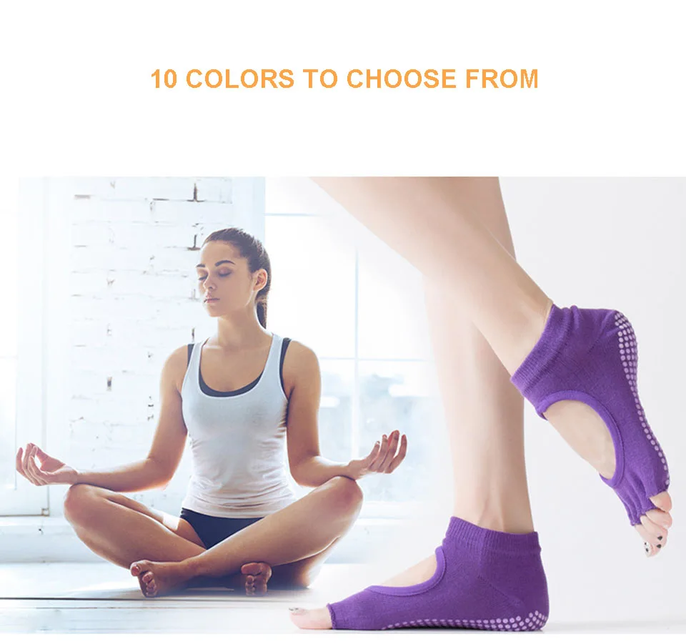 Женские нескользящие носки для йоги с открытой спиной и пятью пальцами, 10 цветов, носки в горошек и Пилатес фитнес спортзал, женские спортивные носки