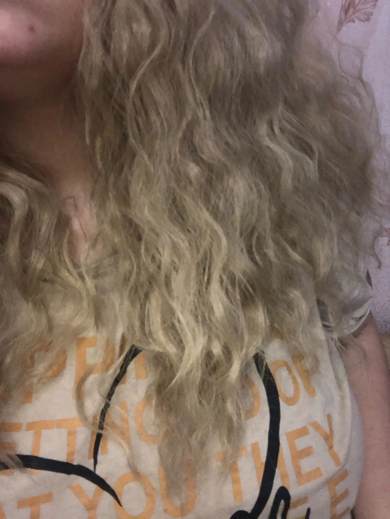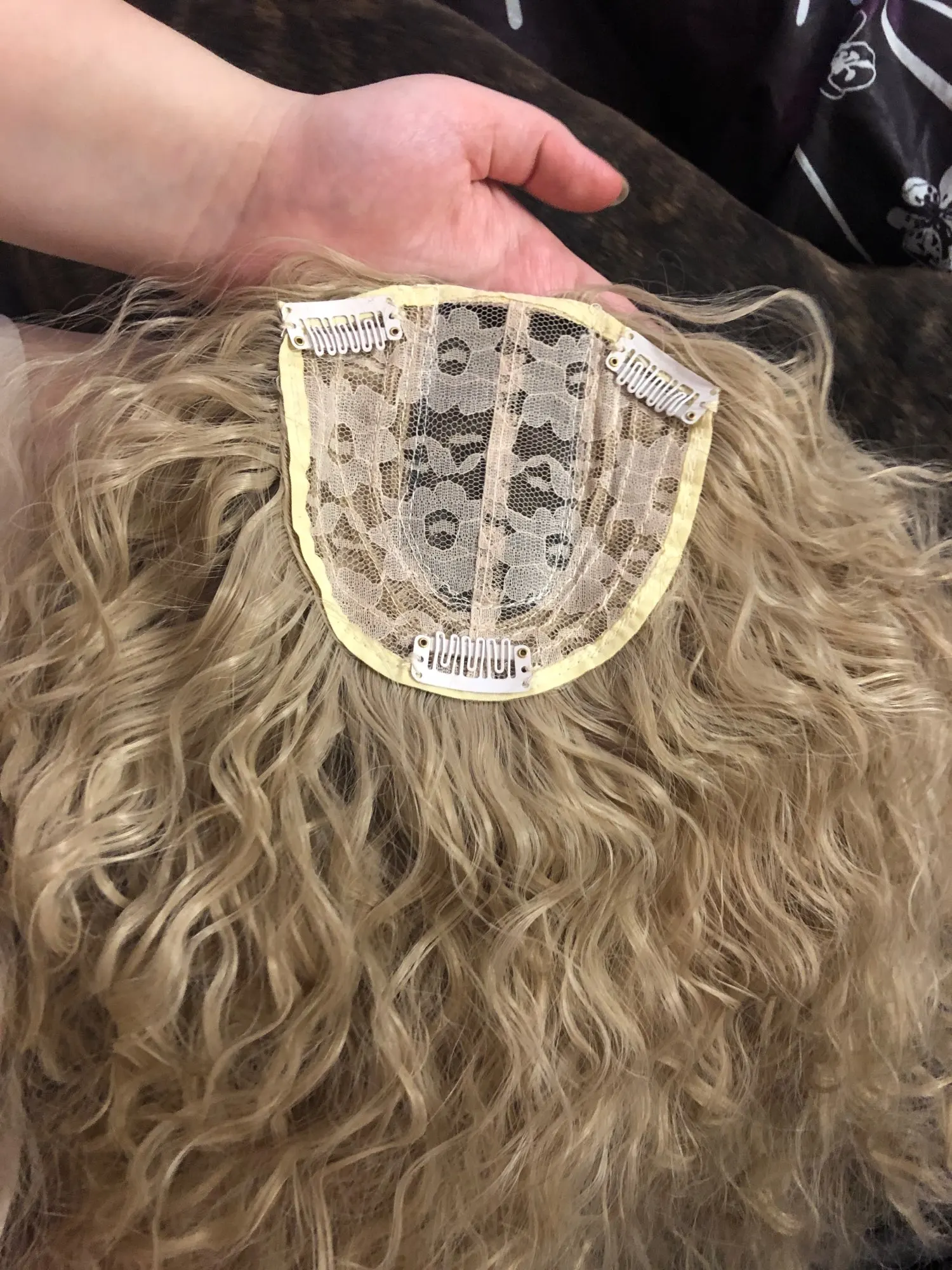 Сами волосы хороши, распиловка хороша, но для светлых волос нужно использовать легкие шпильки... Не черный... Волосы слишком много для меня... Тяжелый. Это не совсем «волнистый», но более скрученный... Слишком «пушистый». Попробую немного высушить. И порезанный.