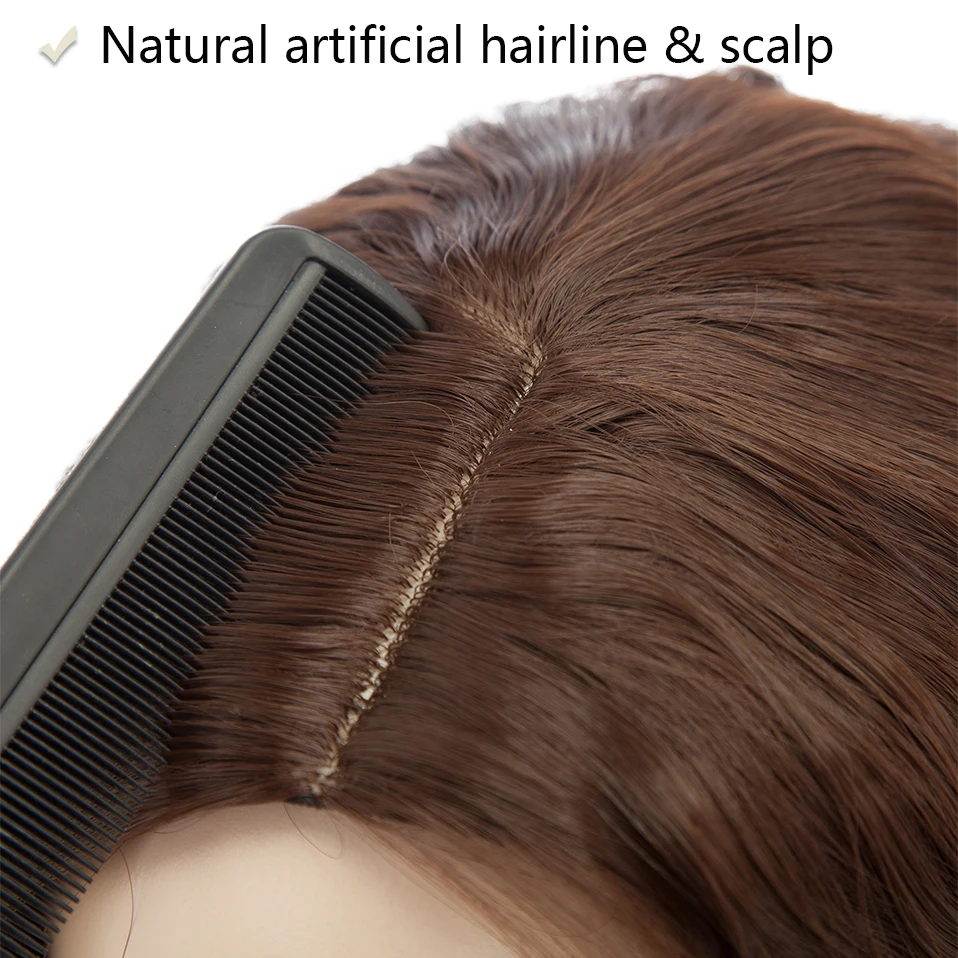 Черный колпачок можно увидеть в верхней части парика рядом с частью. Волосы не покрывают их. К сожалению, синтетический волос выглядит невероятно естественно. Отсутствие блеска.