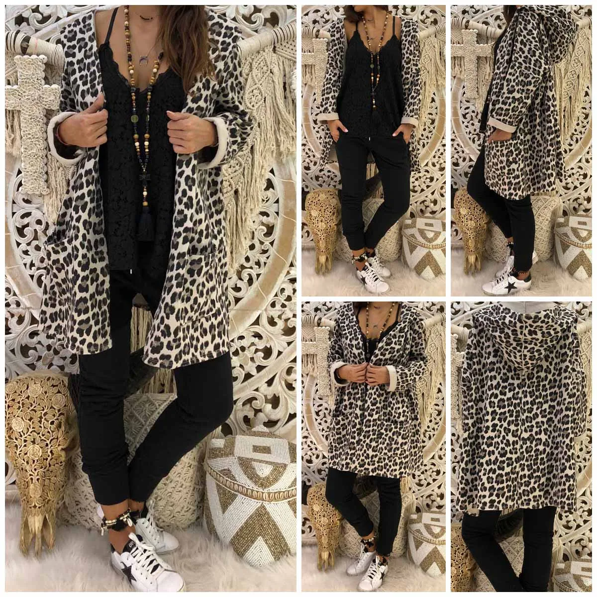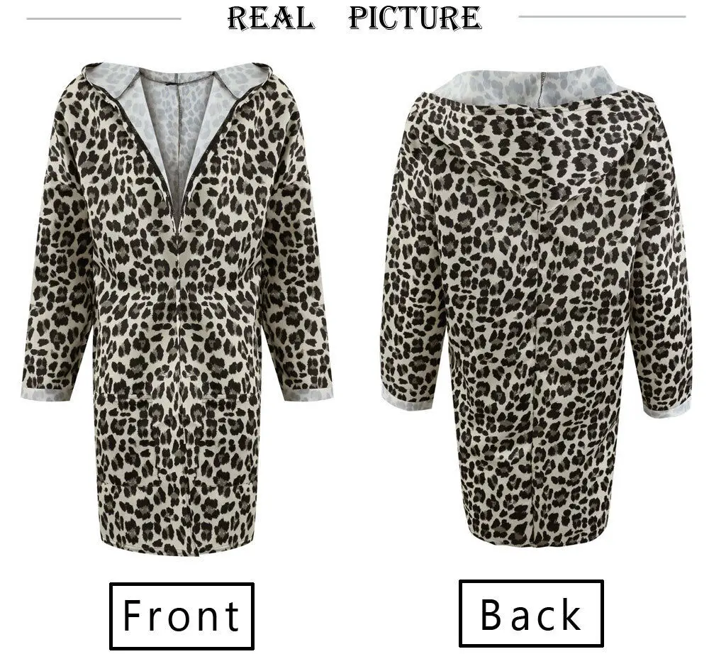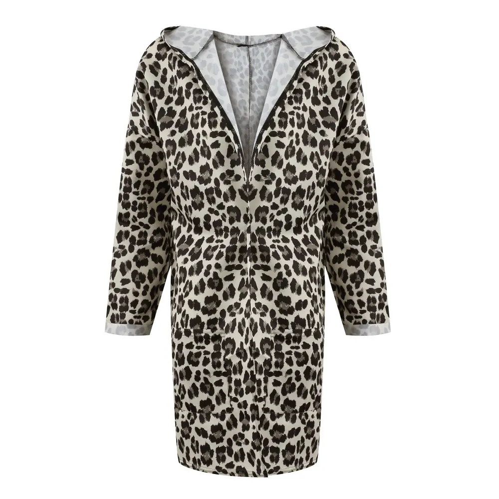 Женское длинное пальто с леопардовым принтом и капюшоном, пикантное зимнее теплое ветровое пальто, кардиган, длинное пальто, Повседневная Уличная одежда, кардиган