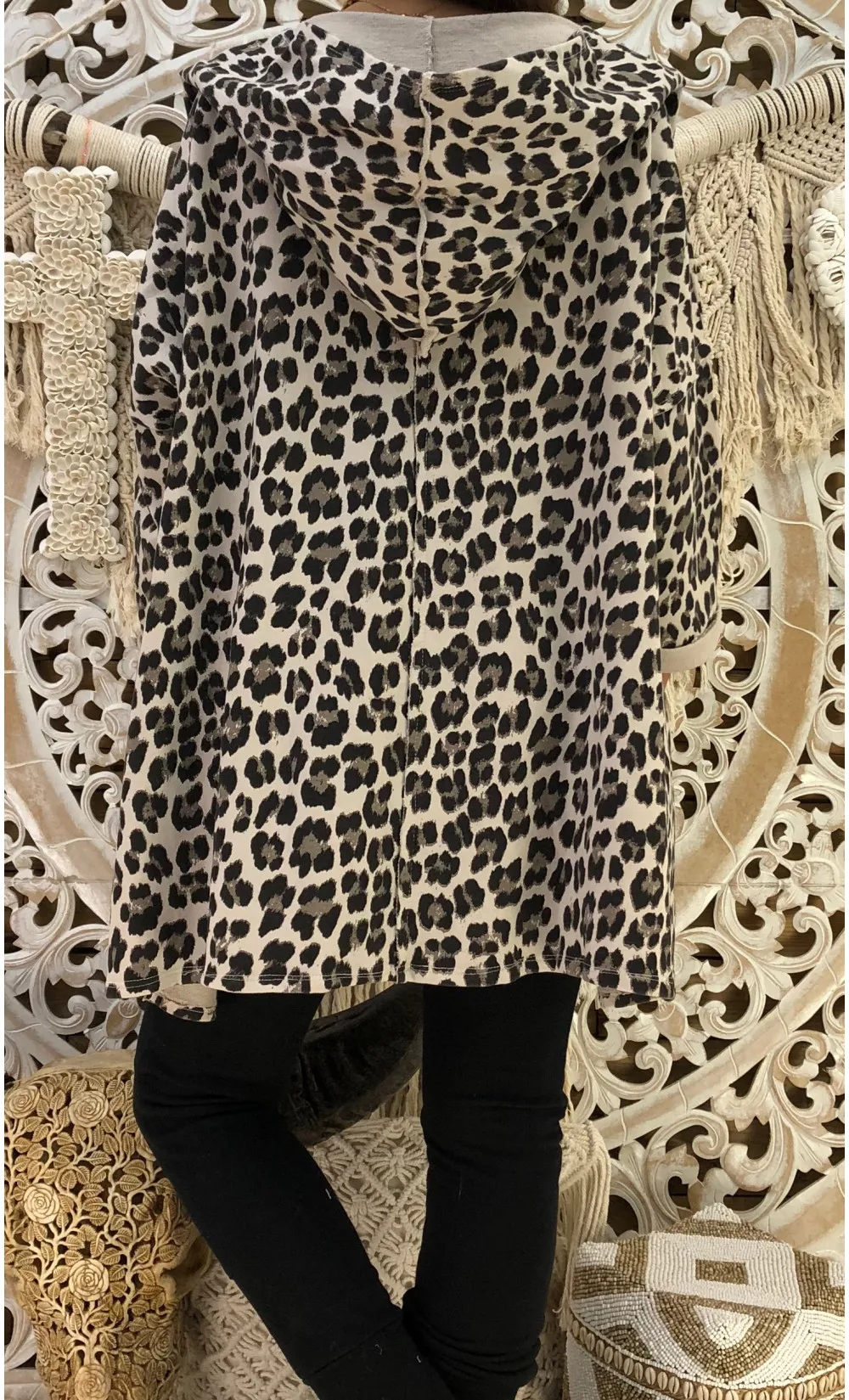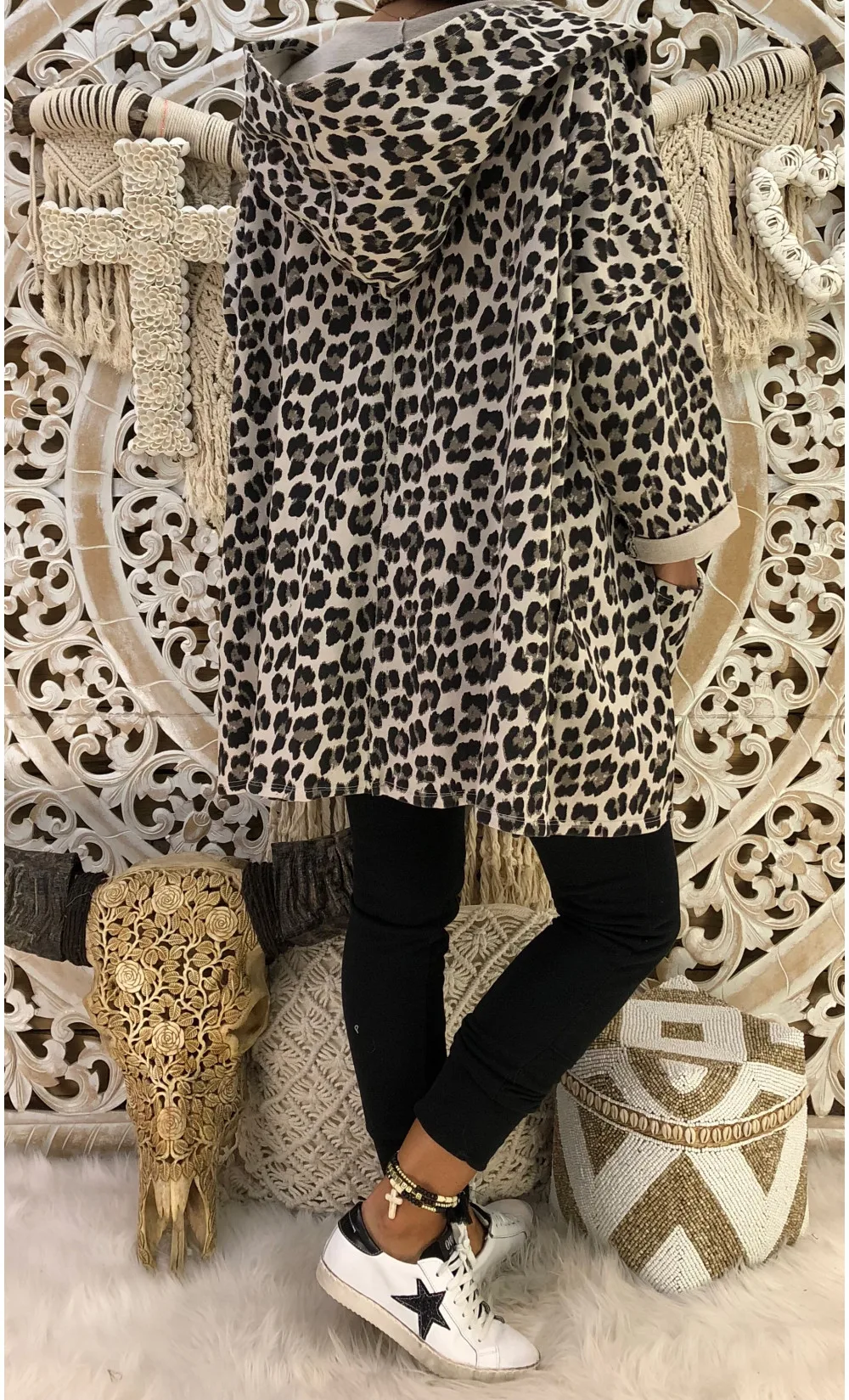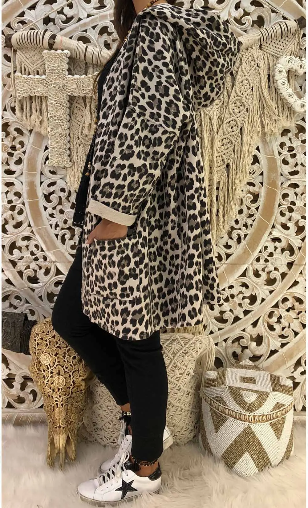 Женское длинное пальто с леопардовым принтом и капюшоном, пикантное зимнее теплое ветровое пальто, кардиган, длинное пальто, Повседневная Уличная одежда, кардиган
