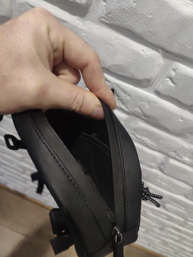 Сумка нормуль ТЛФ влезает без проблем Воду похоже будет отталкивать У меня рама 8,5 см посему одну из липучек придётся наращивать Пришью да х с ним А вот назначение шнурка сбоку вызывает улыбку Ну хотя бы красиво ) А так нормально, можно и преобрЕсть ) Крепенькая Через молнию Вода не попадёт В МО с родины за 5 дней