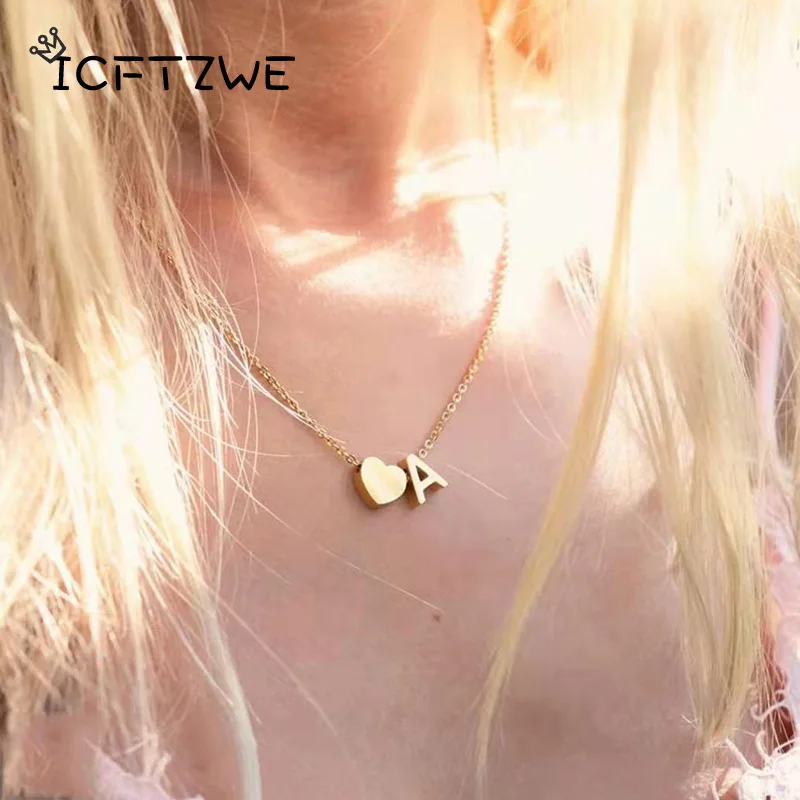 Маленькая начальная ожерелье с подвеской в форме сердца для женщин, из нержавеющей стали, Золотая изящная подвеска с буквой имени, ожерелье с любовью, ювелирное украшение, Подарок на годовщину