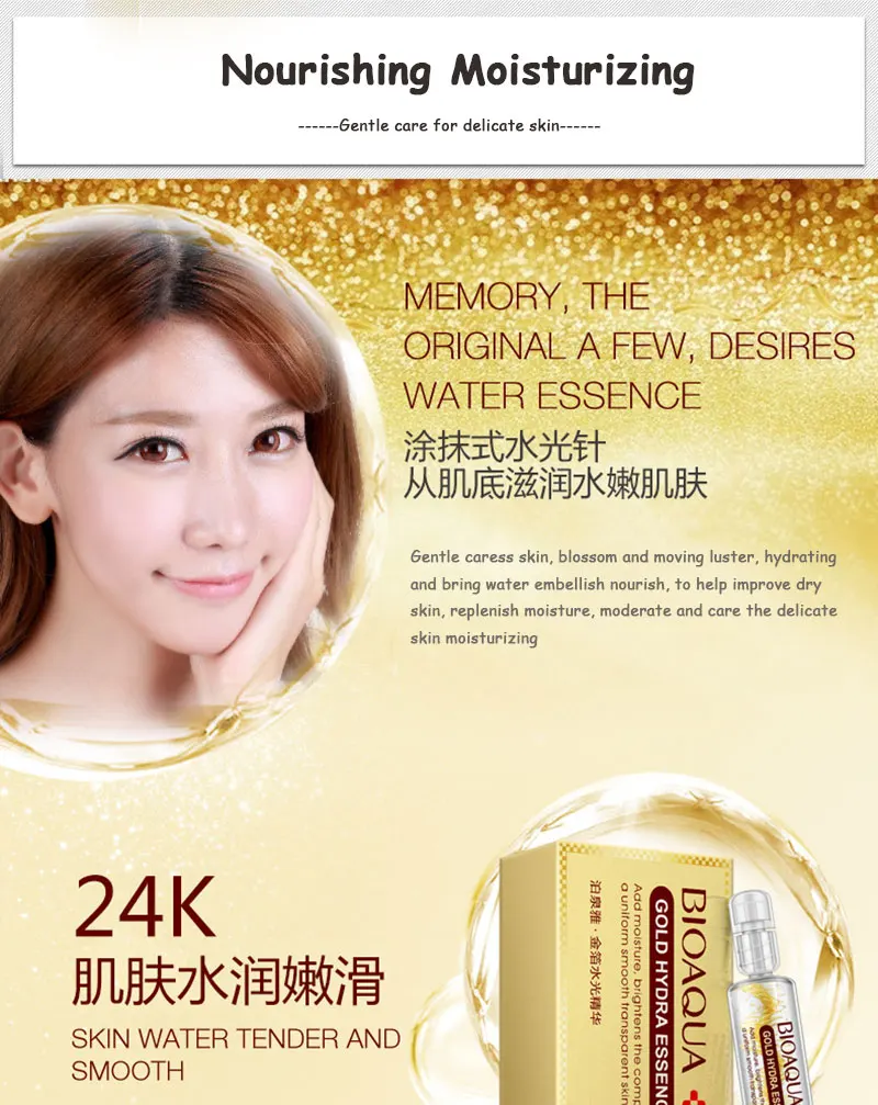 Бренд вioaqua с покрытыем цвета чистого 24 каратного золота жидкая Гиалуроновая кислота уход за кожей увлажняющий крем для лица против морщин и анти-старения коллагеновая эссенция крем 10 мл